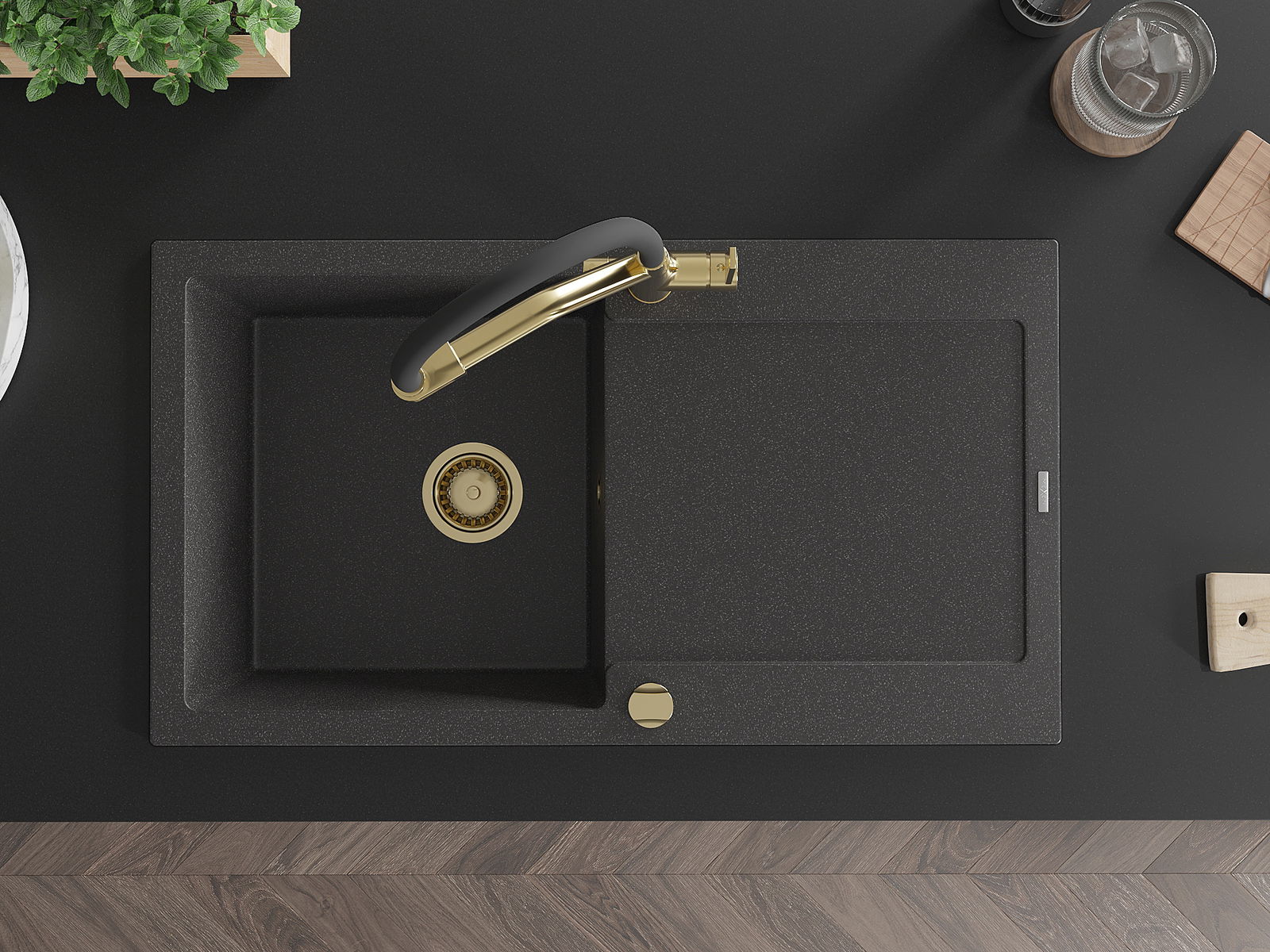 Mexen Leo νεροχύτης γρανίτης 1 θάλαμος με στραγγιστήρα και μπαταρία