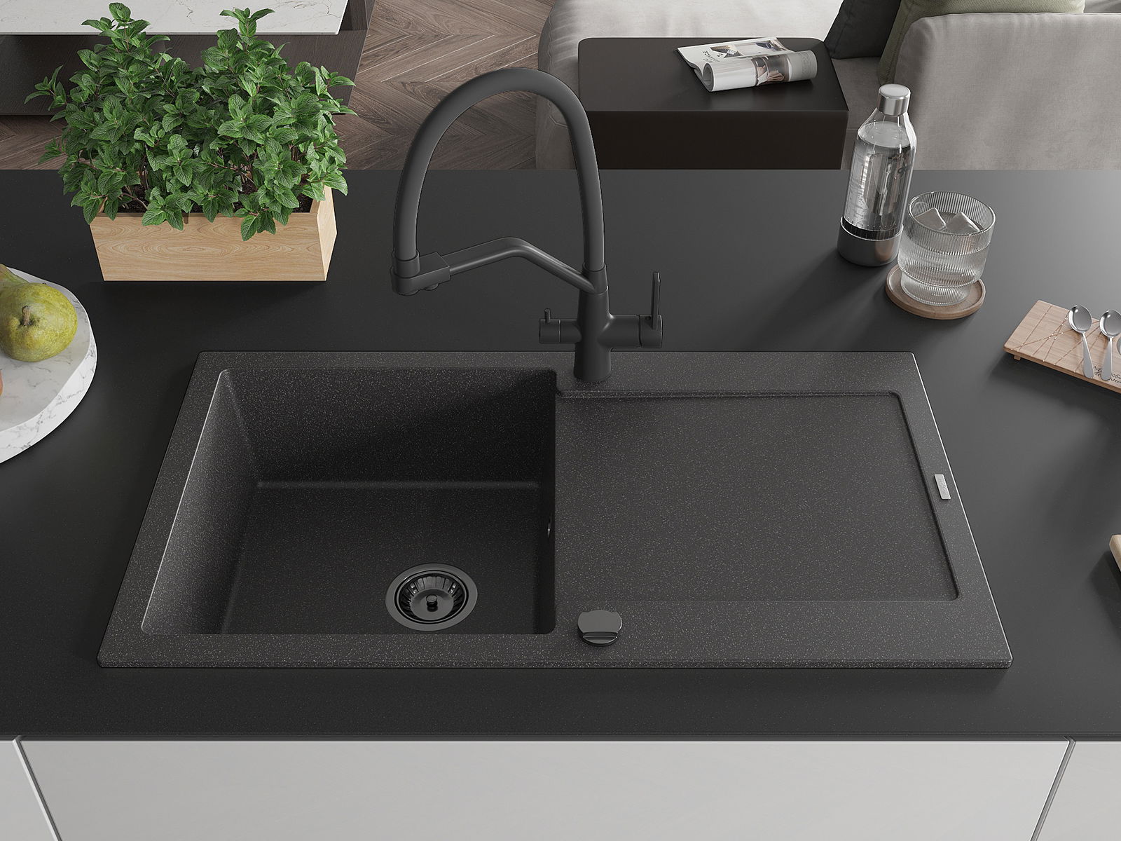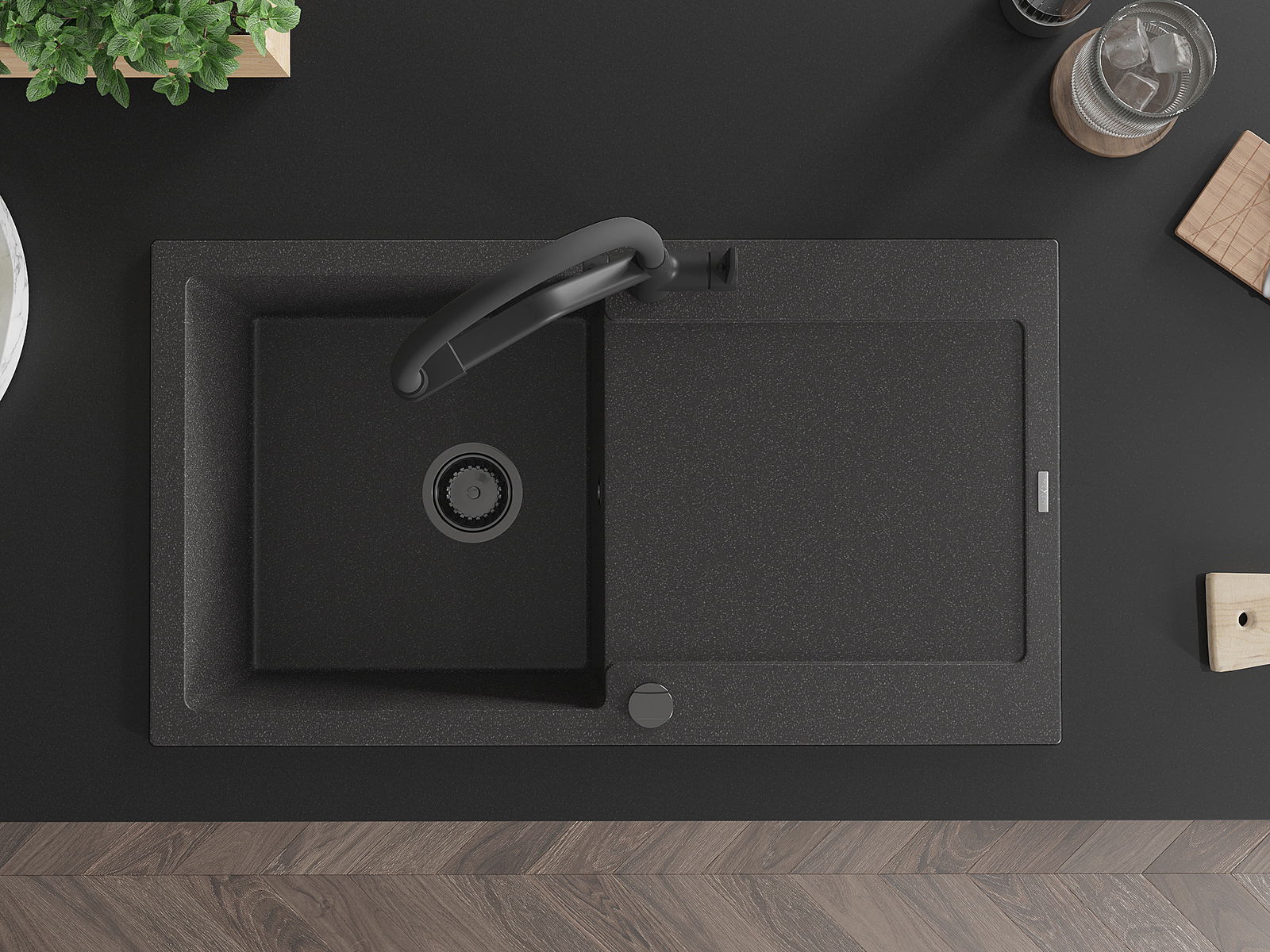 Mexen Leo νεροχύτης γρανίτης 1-θαλάμος με στραγγιστήρα και μπαταρία