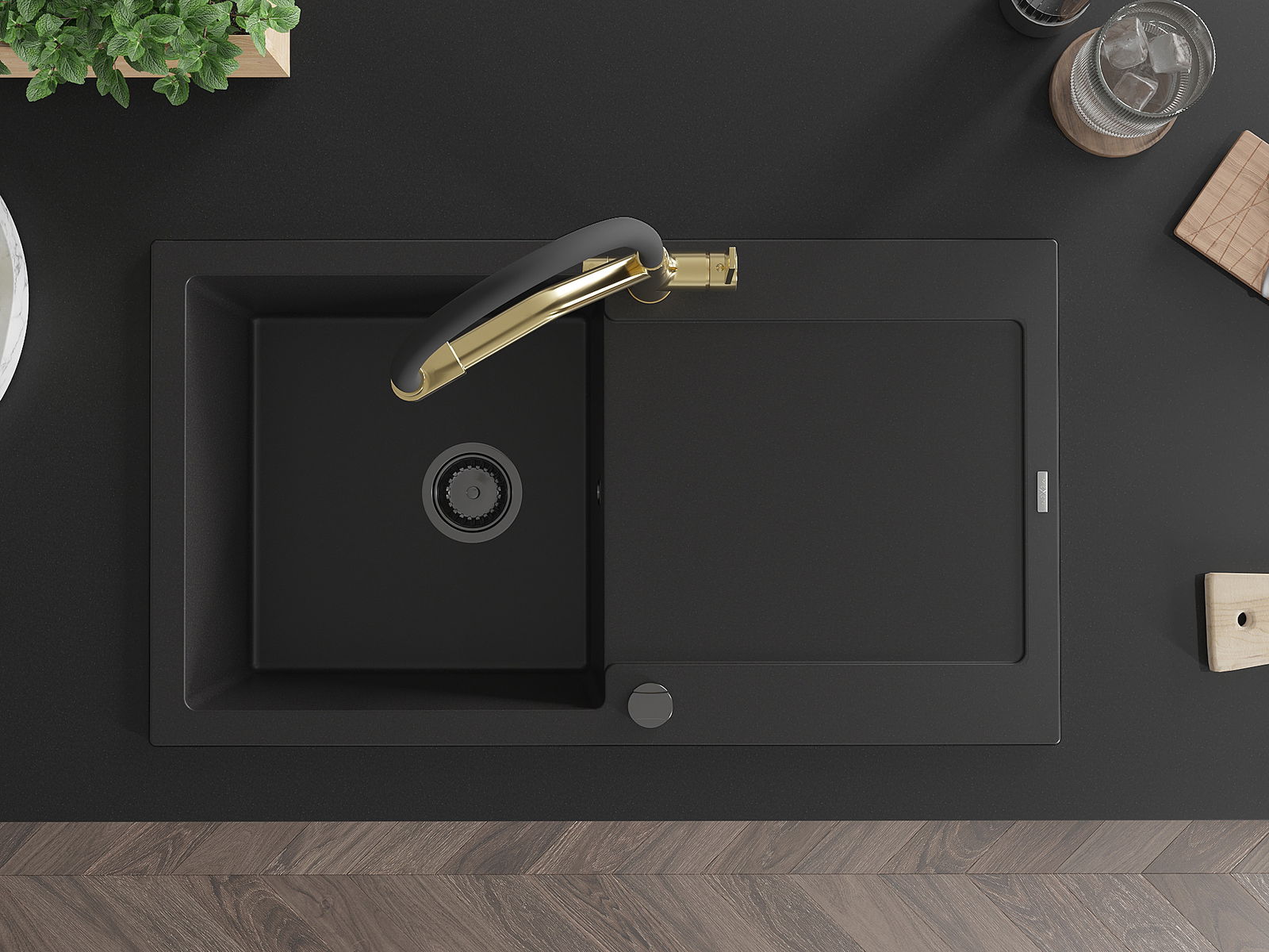 Mexen Leo νεροχύτης γρανίτης 1-θάλαμος με στραγγιστήρα και μπαταρία