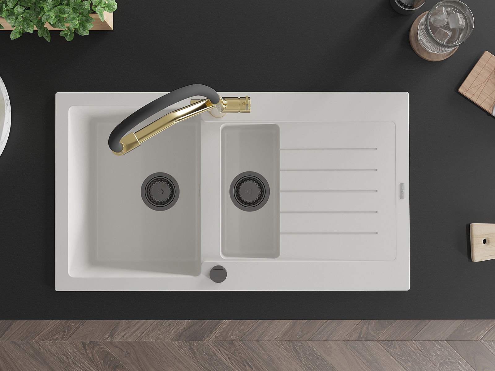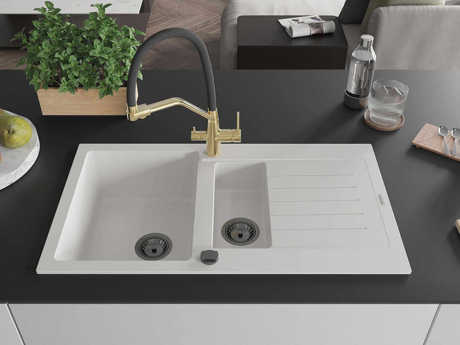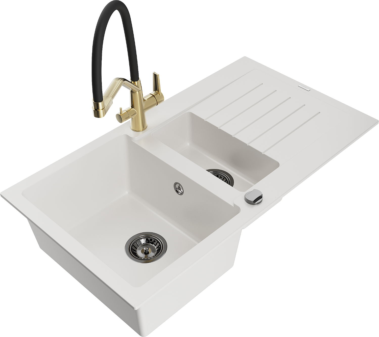 Mexen Matias νεροχύτης γρανιτένιος 1,5 θέσεων με στραγγιστήρι και μπαταρία