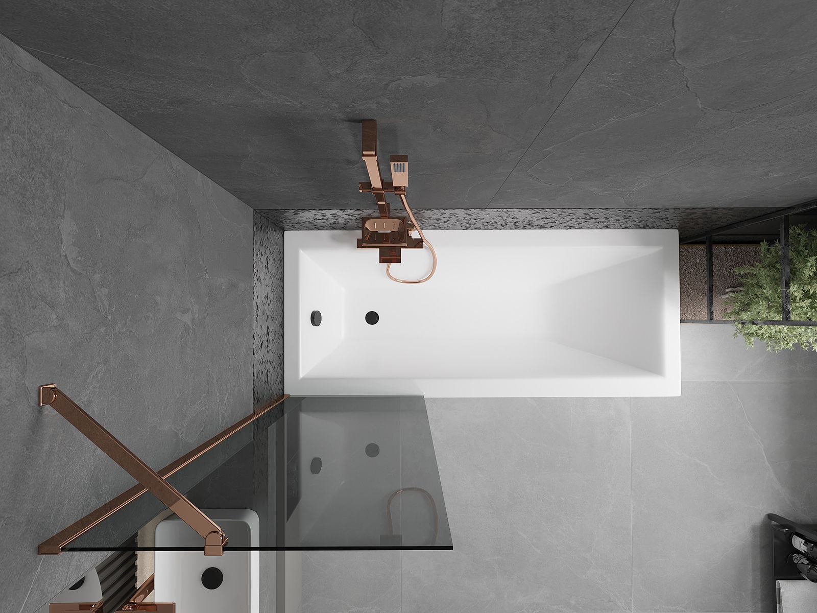 Mexen Next παραβάν μπανιέρας μονόπτερο 60 x 150 cm, γραφίτης, ροζ χρυσό