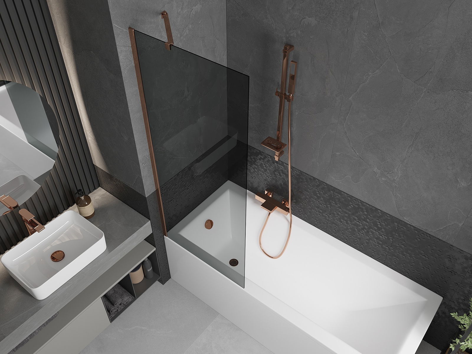 Mexen Next παραβάν μπανιέρας 1-φύλλου 70 x 150 εκ., γραφίτης, ροζ χρυσό