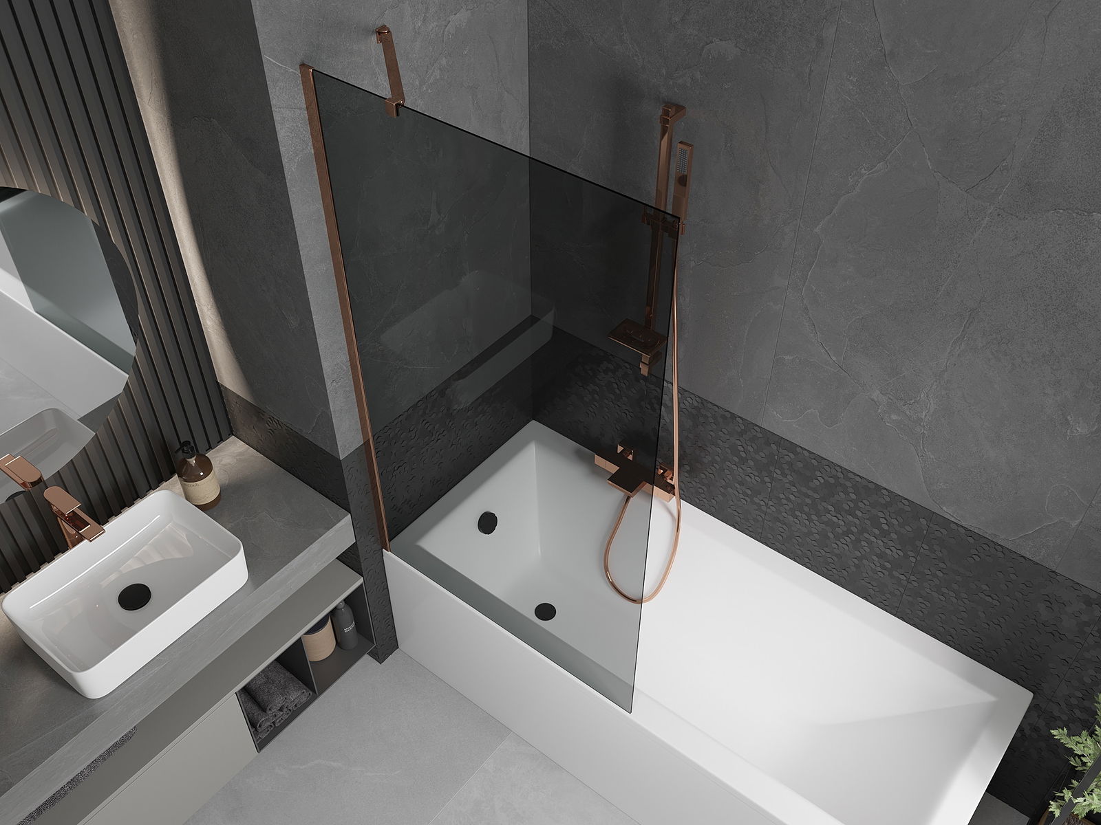 Mexen Next παραβάν μπάνιου 1-πτερύγιο 90 x 150 cm, γραφίτης, ροζ χρυσό