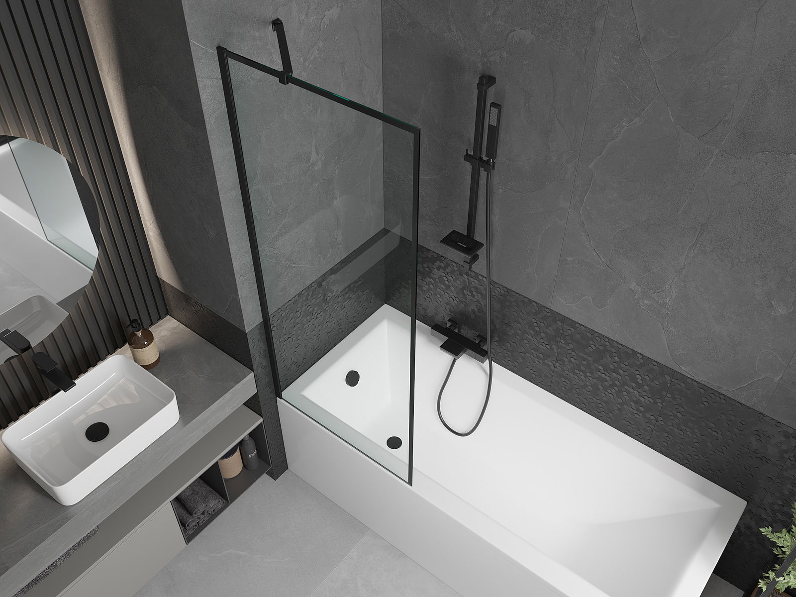 Mexen Next μονοκατευθυντικό διαχωριστικό μπάνιου 70 x 150 cm, μαύρο πλαίσιο,