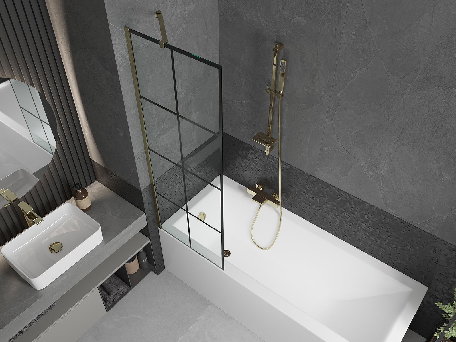 Mexen Next Παραβάν μπάνιου 1-πτερυγιοφόρο 60 x 150 εκ., μαύρο καρό, χρυσό