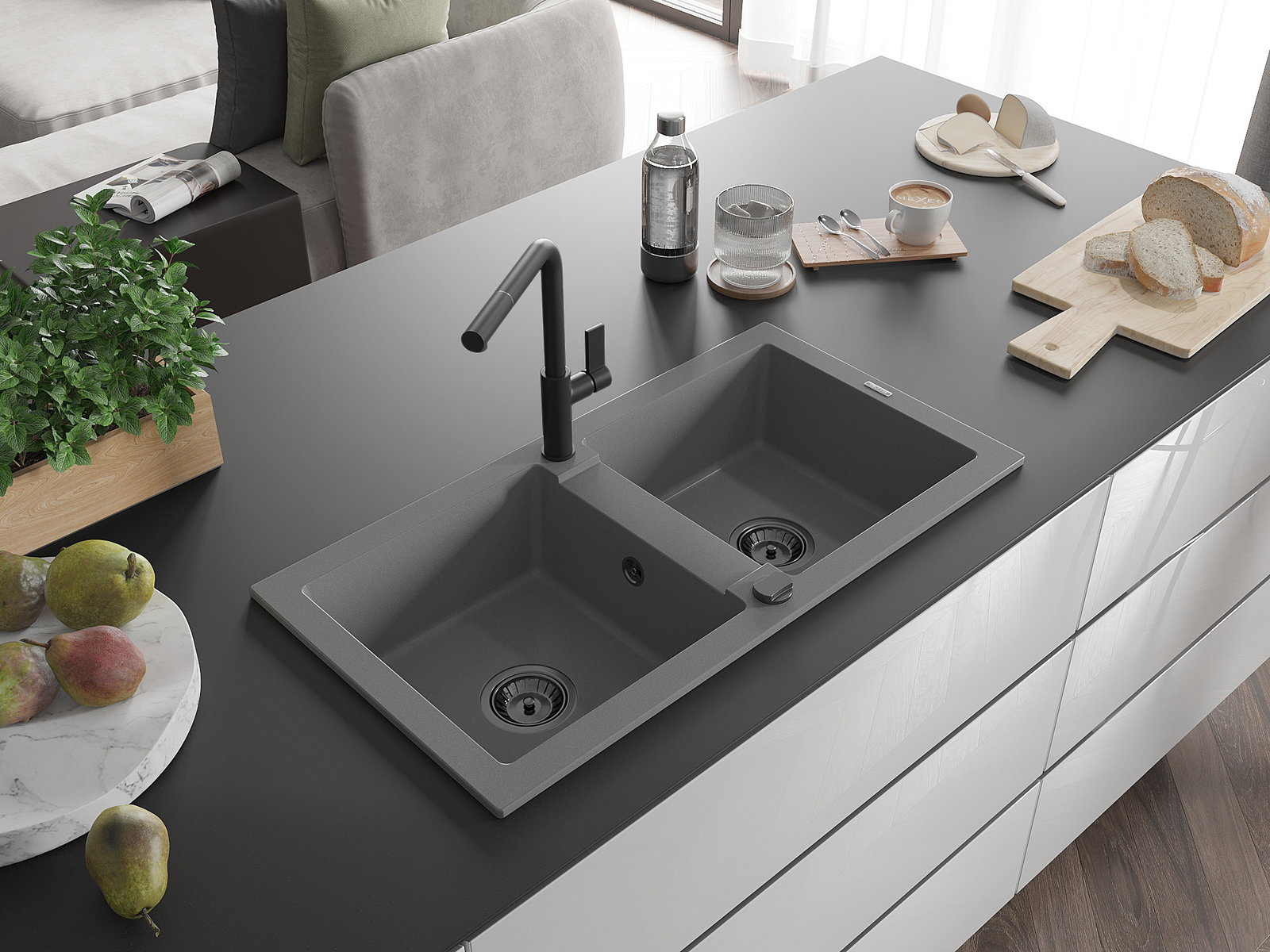 Ο νεροχύτης κατασκευάστηκε από υψηλής ποιότητας γρανίτη. Αποτελεί μια κομψή, και κυρίως πρακτική προσθήκη για κάθε κουζίνα, ανεξάρτητα από το στυλ της. Η υψηλή ποιότητα και η αντοχή του γρανίτη εξασφαλίζουν πολυετή χρήση.