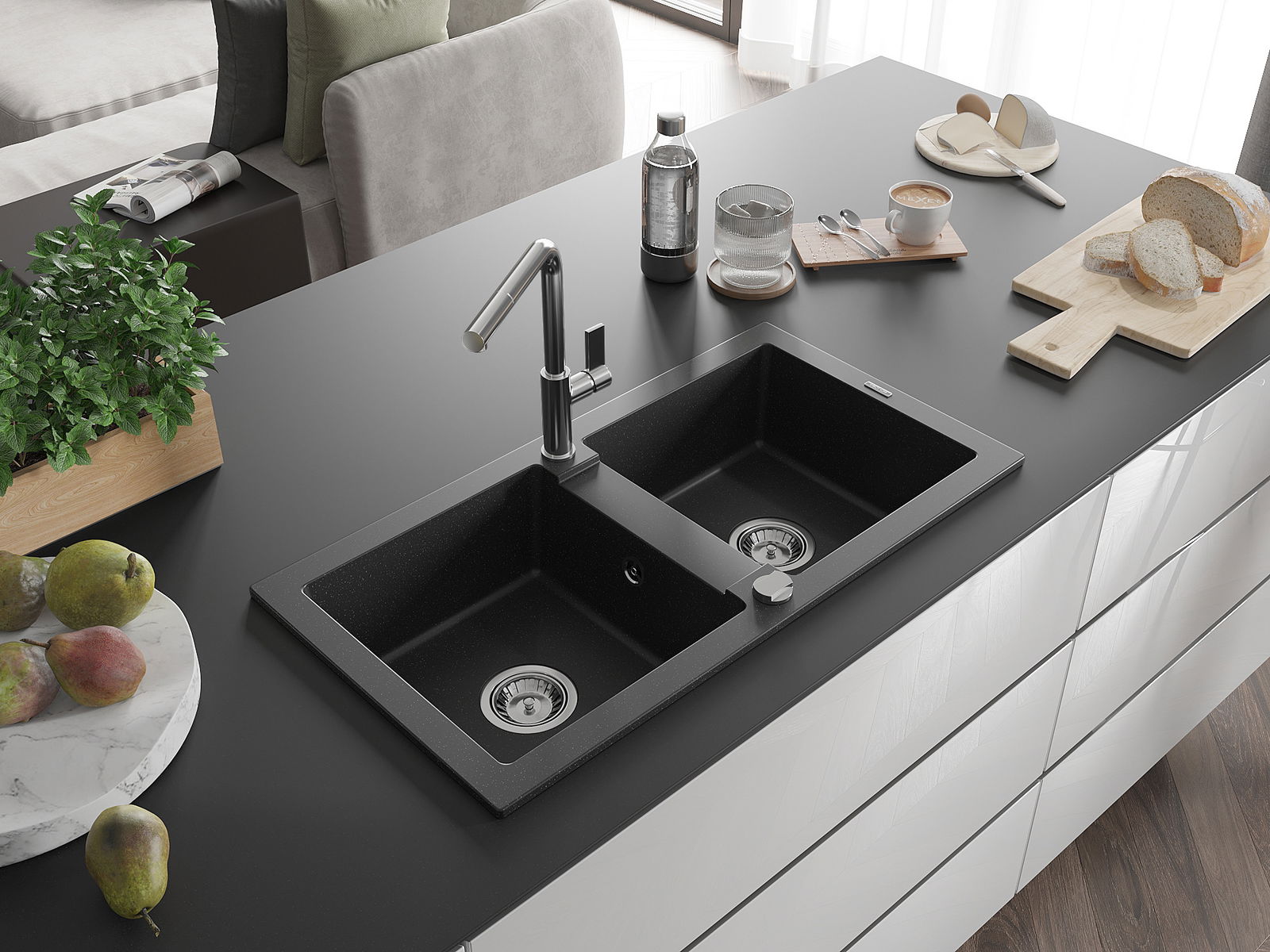 Mexen Mario νεροχύτης γρανίτης 2 θαλάμων με μπαταρία κουζίνας Flora,