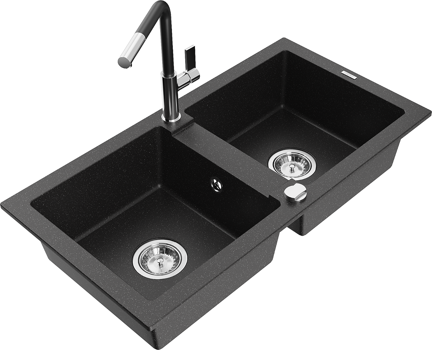 Mexen Mario νεροχύτης γρανίτης 2 θαλάμων με μπαταρία κουζίνας Flora,