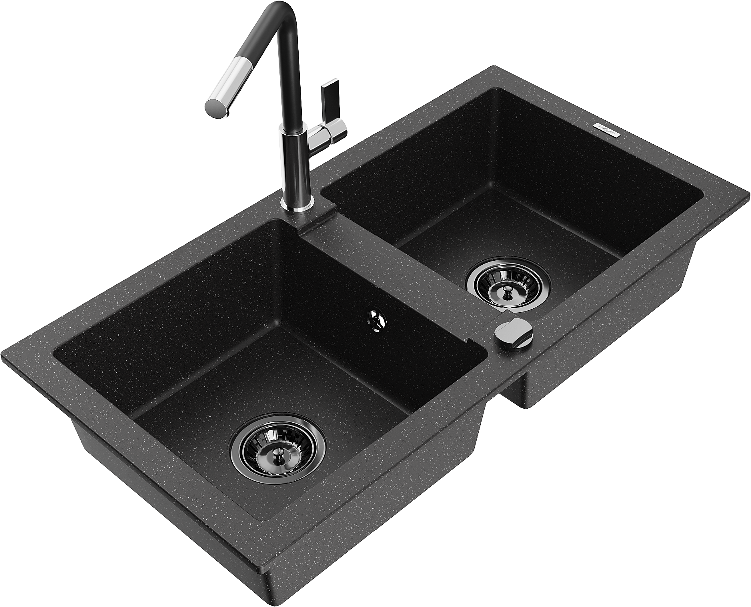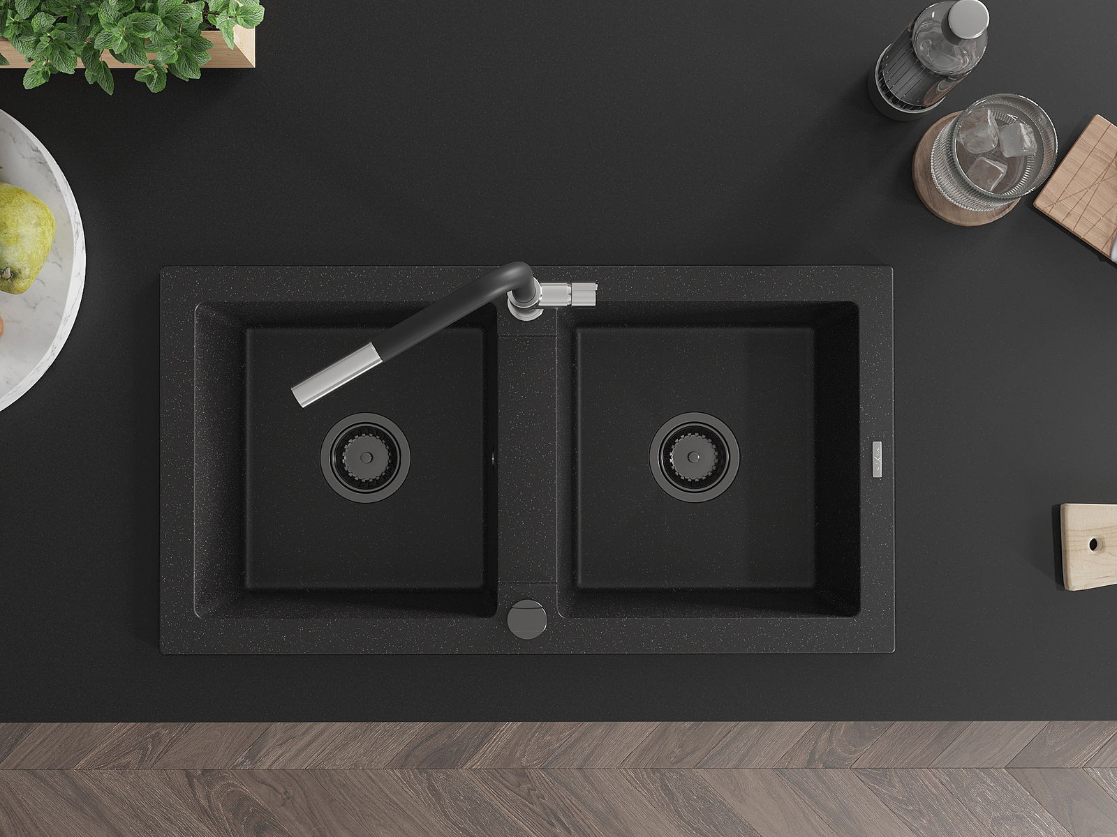 Mexen Mario Νεροχύτης Γρανίτης 2-Θαλάμων με Μπαταρία Κουζίνας Flora,