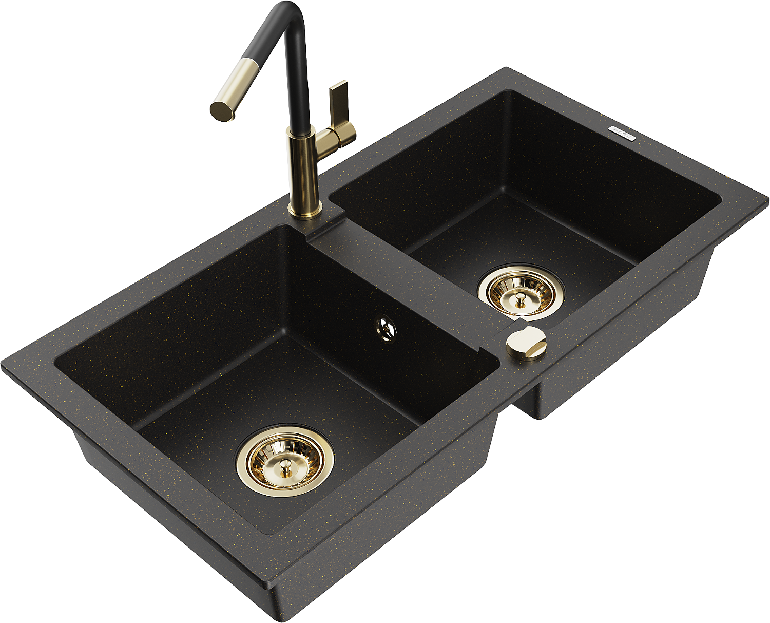 Mexen Mario νιπτήρας γρανίτη 2-διαμερισμάτων με μπαταρία κουζίνας Flora,