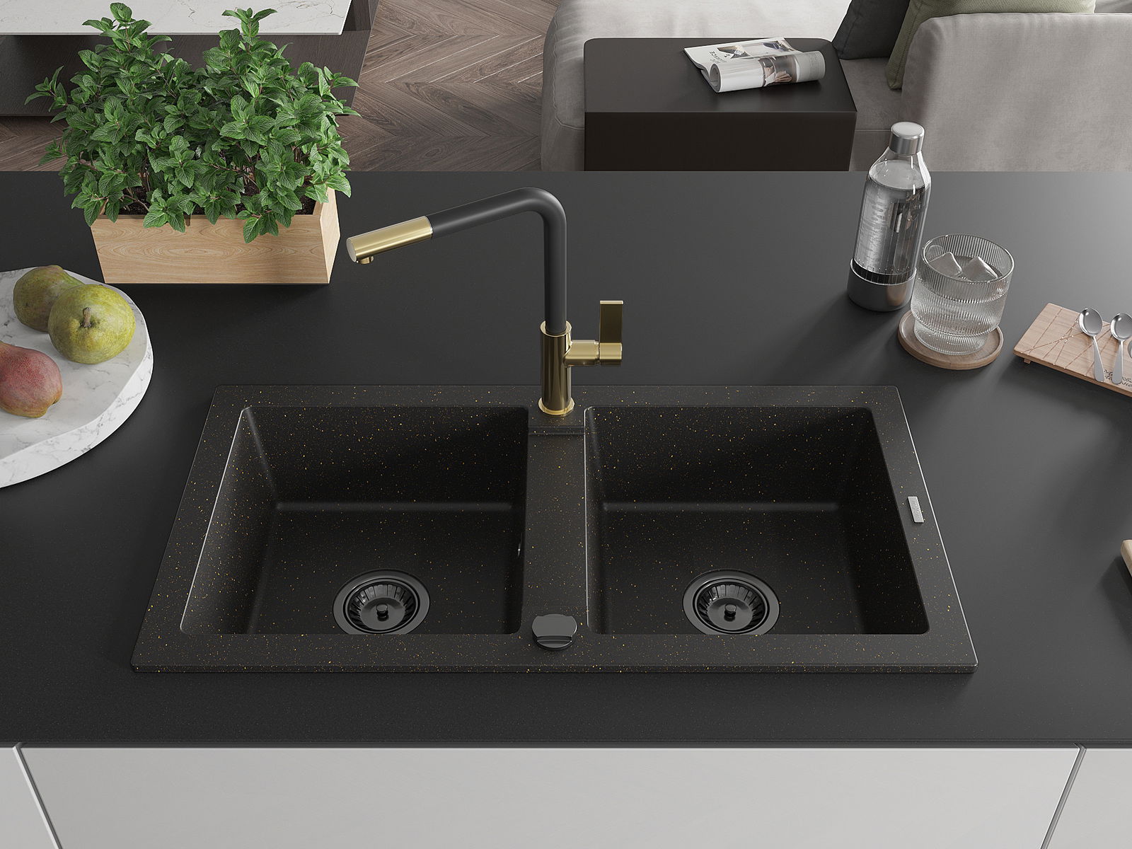 Mexen Mario νεροχύτης γρανίτης 2-διαμερίσματα με μπαταρία κουζίνας Flora,