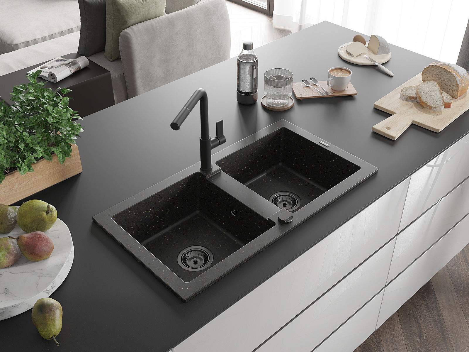 Mexen Mario νεροχύτης γρανίτης 2-θαλάμων με μπαταρία κουζίνας Flora,