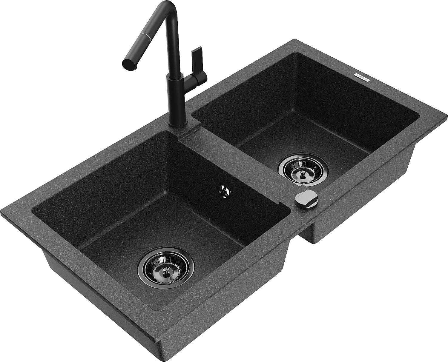 Mexen Mario νεροχύτης γρανίτης δύο θαλάμων με μπαταρία κουζίνας Flora, μαύρο