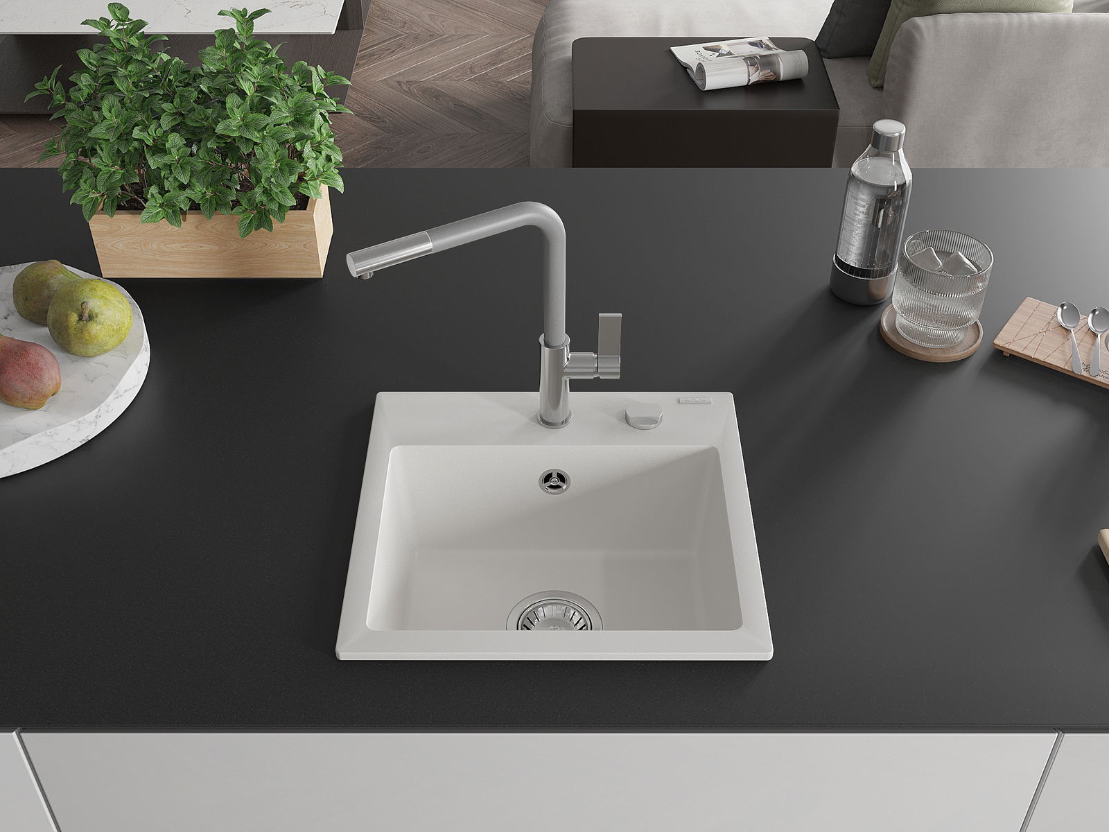 Ο νεροχύτης κατασκευάστηκε από υψηλής ποιότητας γρανίτη. Αποτελεί μια κομψή, και κυρίως πρακτική προσθήκη για κάθε κουζίνα, ανεξάρτητα από το στυλ της. Η υψηλή ποιότητα και η αντοχή του γρανίτη εξασφαλίζουν πολυετή χρήση.