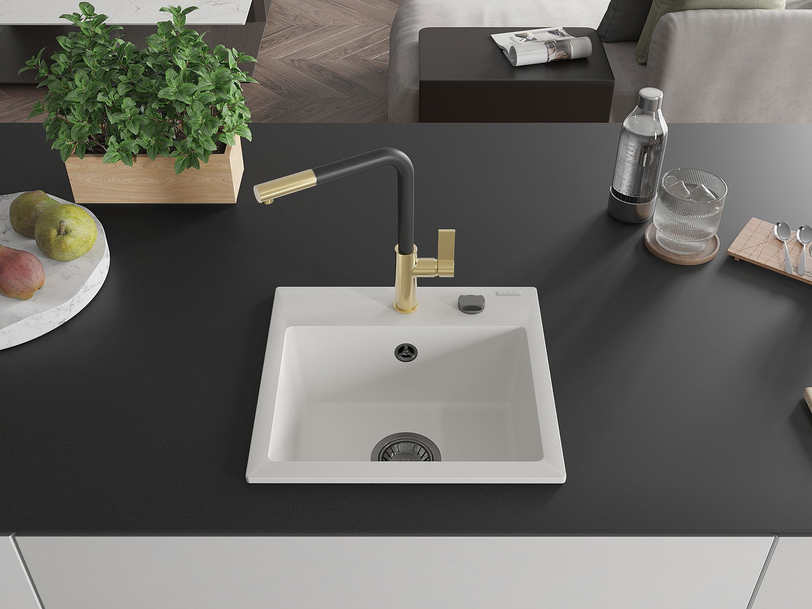 Mexen Milo νεροχύτης γρανίτης 1-διαμερισμάτων με μπαταρία κουζίνας Flora,