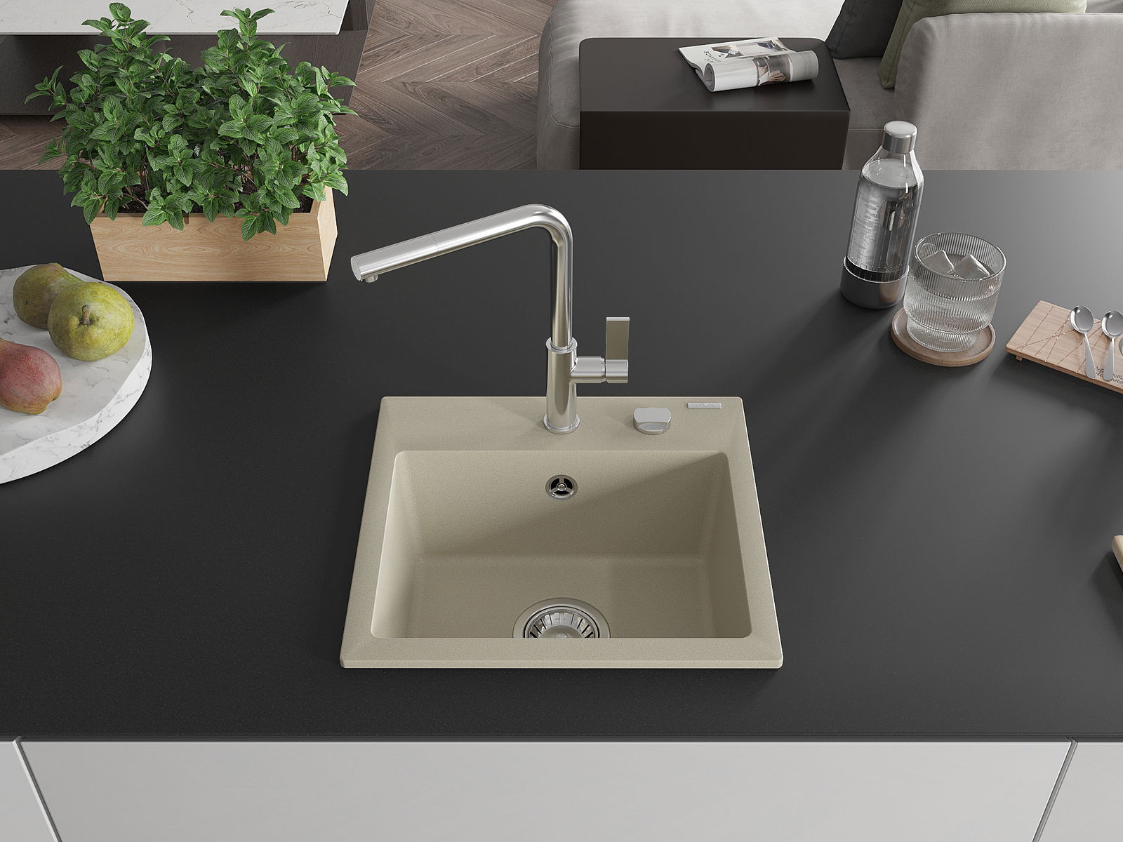 Mexen Milo νεροχύτης γρανίτης μονόχωρος με μπαταρία κουζίνας Flora, μπεζ