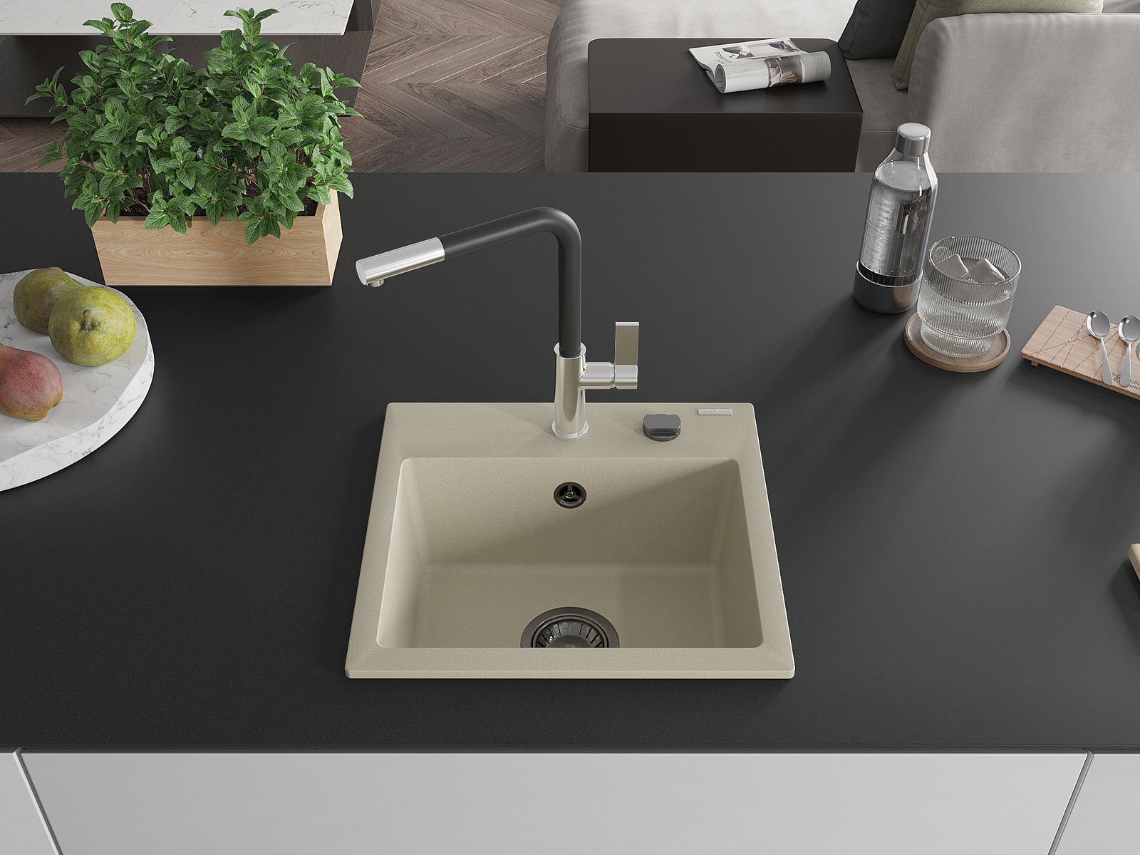 Mexen Milo νεροχύτης γρανίτης 1 θαλάμου με μπαταρία κουζίνας Flora, μπεζ