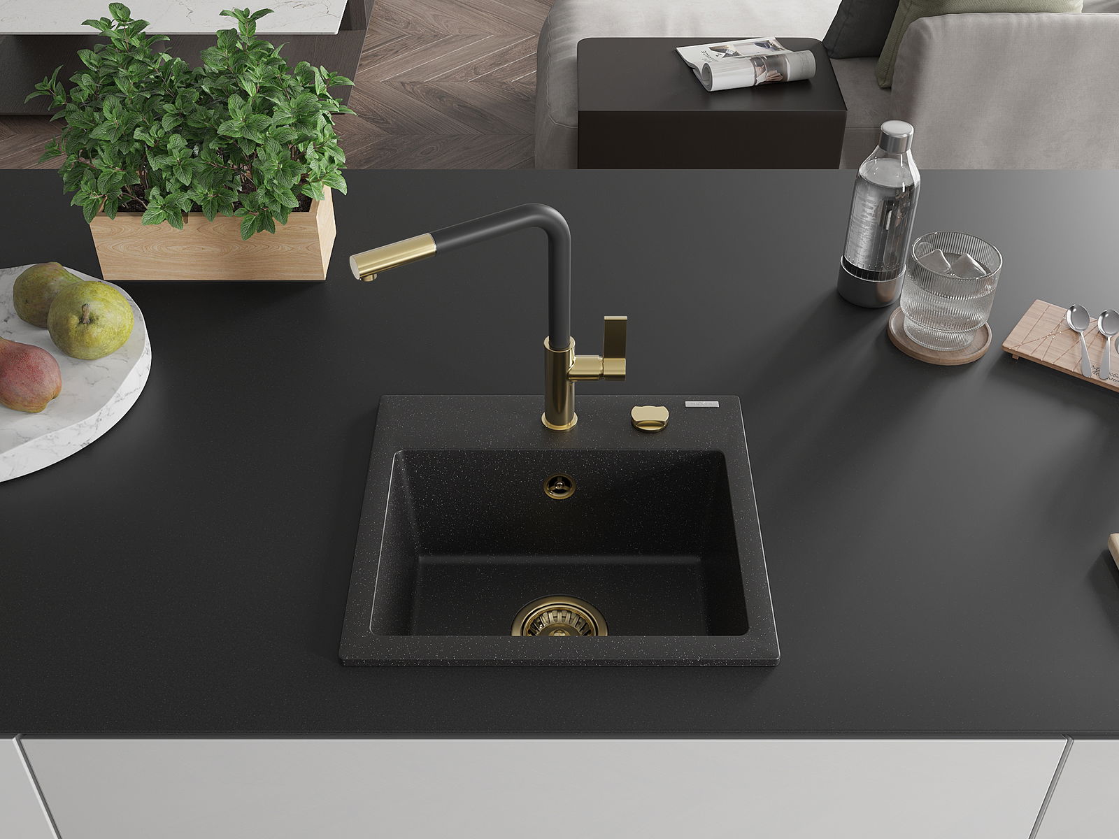 Mexen Milo νεροχύτης γρανίτη 1-θάλαμος με μπαταρία κουζίνας Flora,