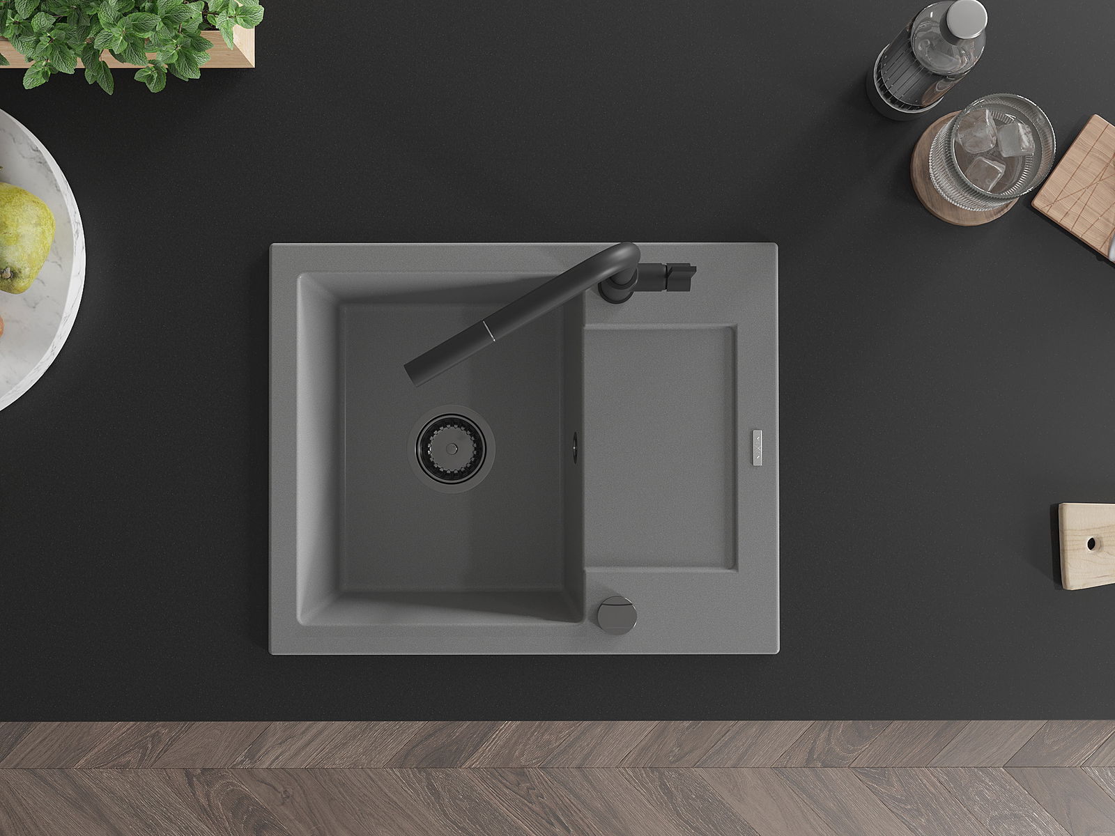 Ο νεροχύτης κατασκευάστηκε από υψηλής ποιότητας γρανίτη. Αποτελεί μια κομψή, και κυρίως πρακτική προσθήκη για κάθε κουζίνα, ανεξάρτητα από το στυλ της. Η υψηλή ποιότητα και η αντοχή του γρανίτη εξασφαλίζουν πολυετή χρήση.