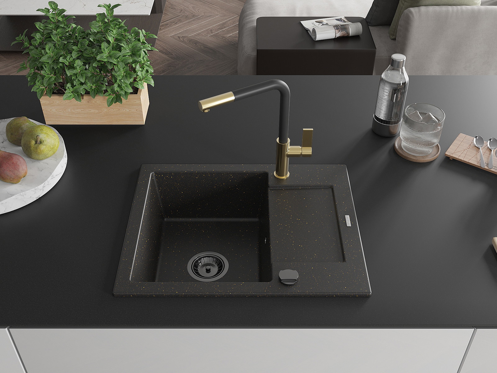 Mexen Enzo γρανιτένιος νεροχύτης μονής λεκάνης με αποστράγγιση και