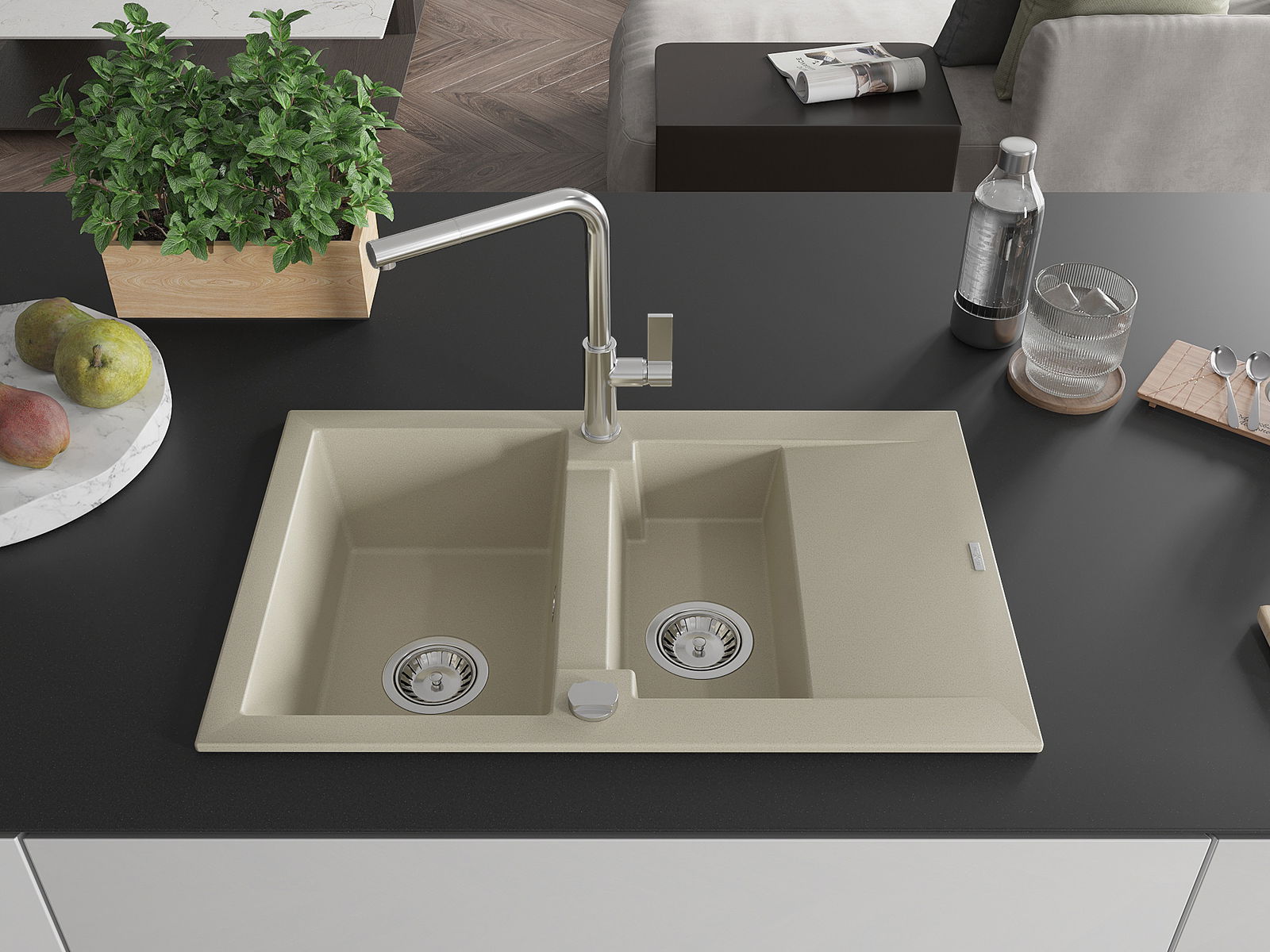 Ο νεροχύτης κατασκευάστηκε από υψηλής ποιότητας γρανίτη. Αποτελεί μια κομψή, και κυρίως πρακτική προσθήκη για κάθε κουζίνα, ανεξάρτητα από το στυλ της. Η υψηλή ποιότητα και η αντοχή του γρανίτη εξασφαλίζουν πολυετή χρήση.