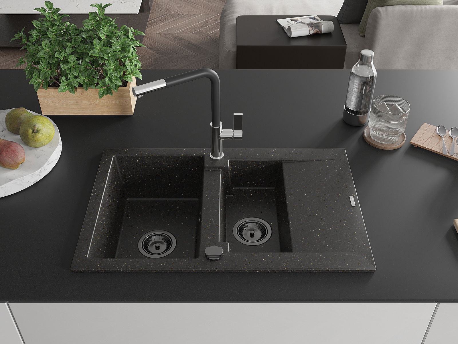 Mexen Gaspar νεροχύτης γρανίτης 1,5 θαλάμου με αποστραγγιστήρα και μπαταρία