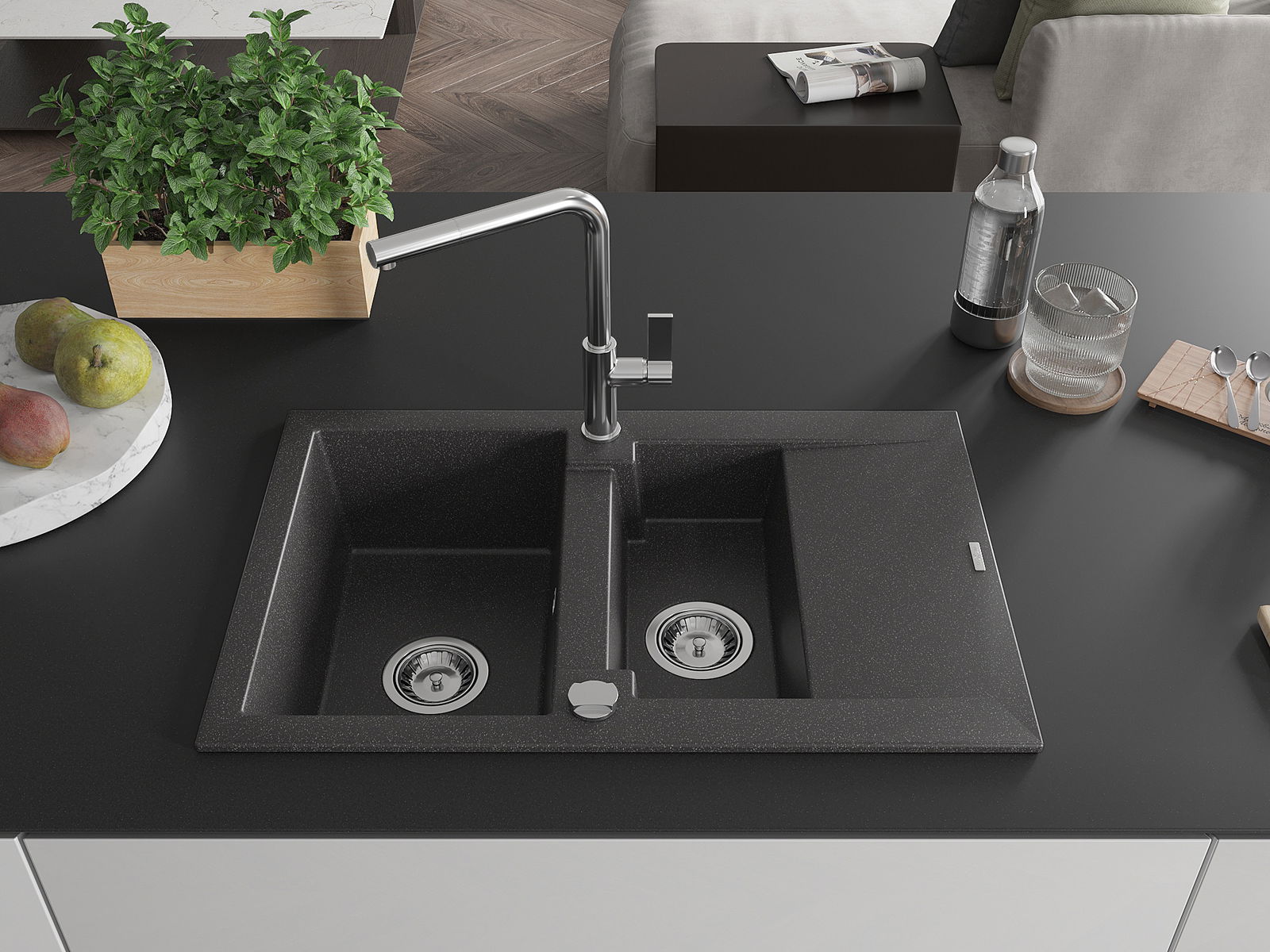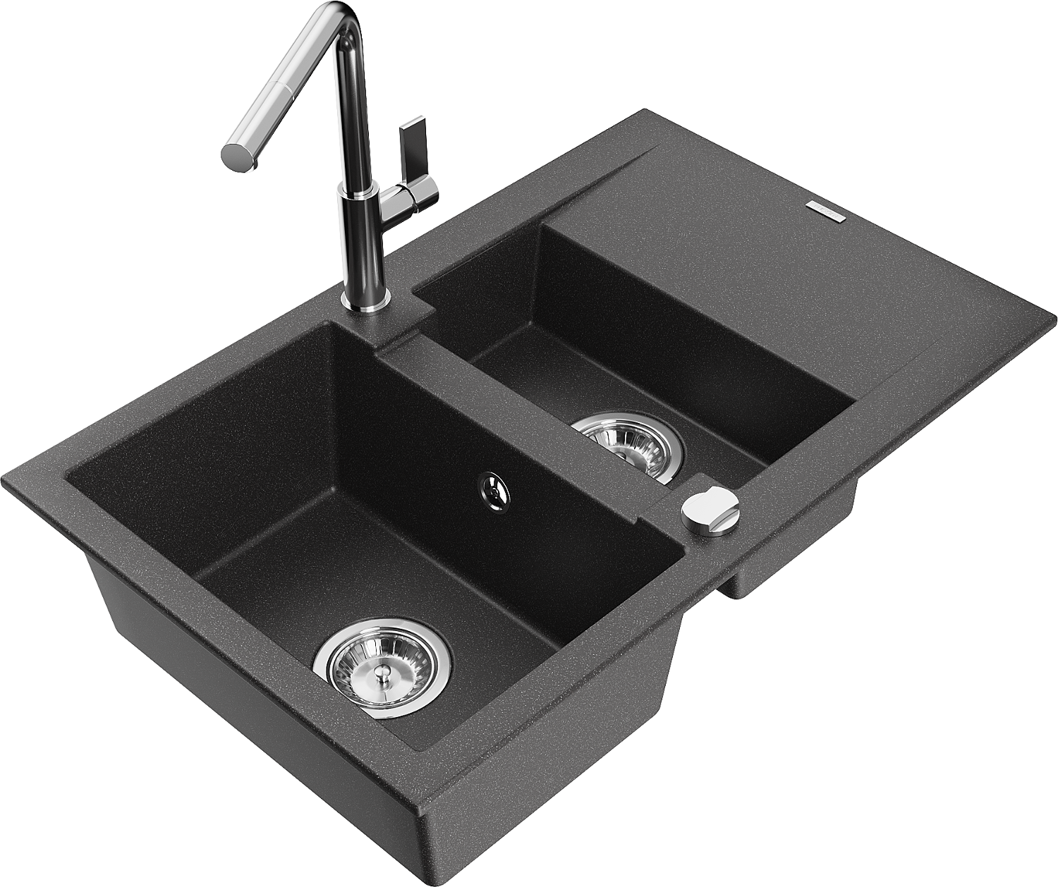 Mexen Gaspar νιπτήρας γρανίτη 1,5 θέσεων με αποστραγγιστήριο και βρύση