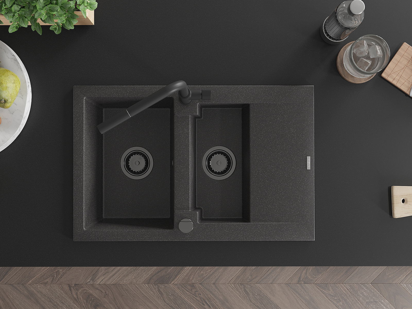 Mexen Gaspar νιπτήρας γρανίτης 1,5-θαλάμου με στραγγιστήρα και μπαταρία