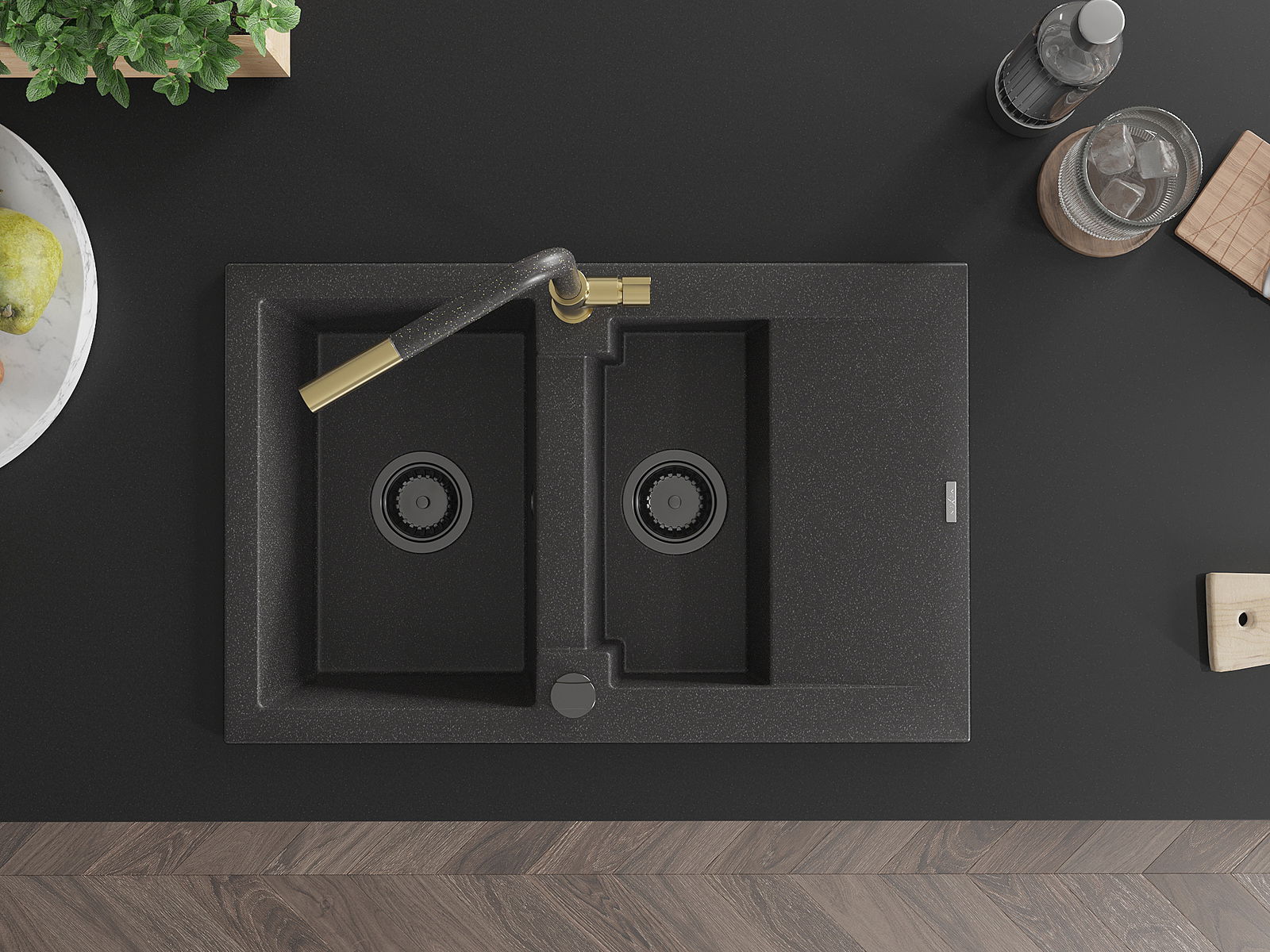 Mexen Gaspar νεροχύτης γρανίτης 1,5-θαλάμων με στραγγιστήρι και μπαταρία