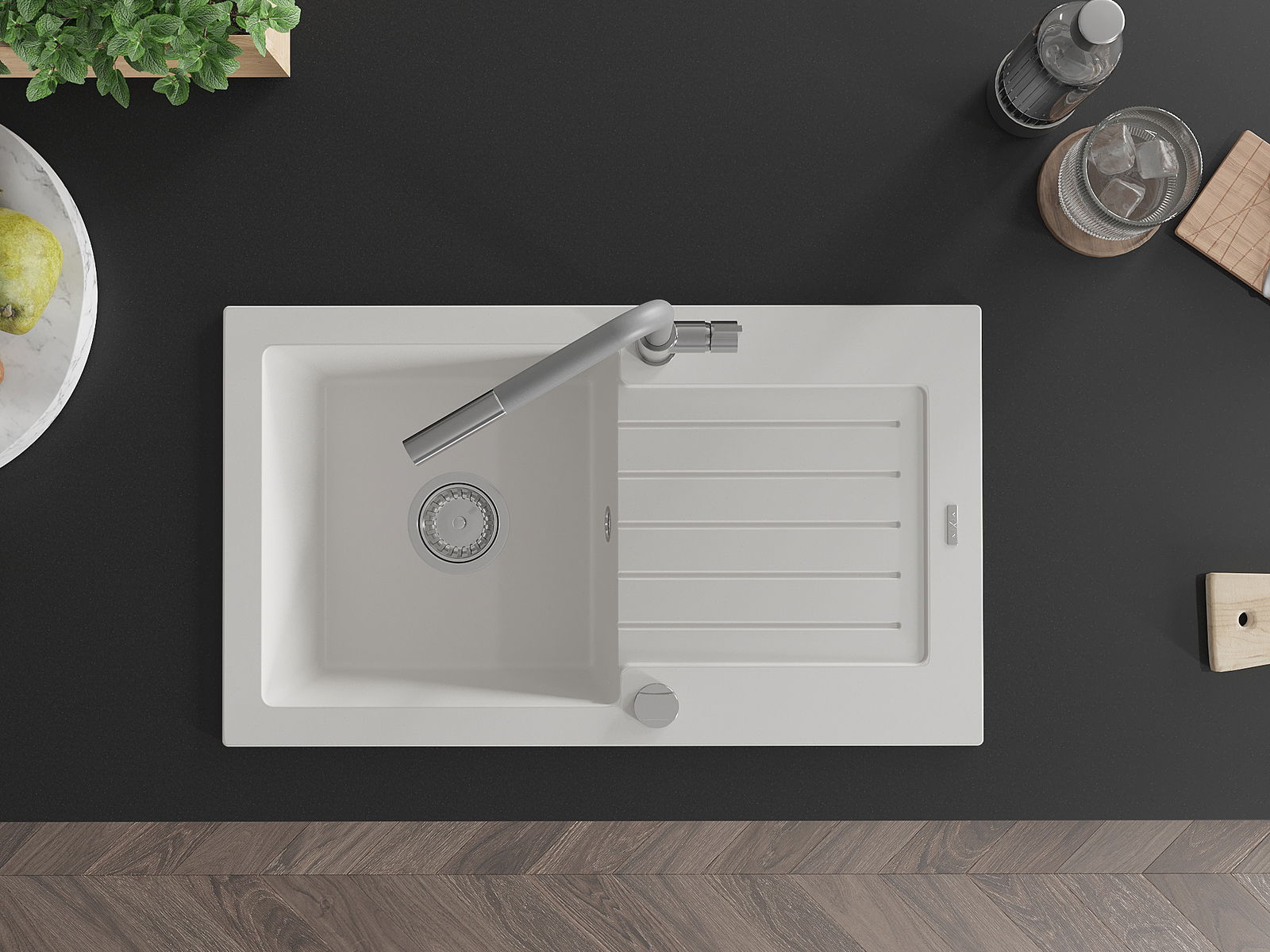 Ο νεροχύτης κατασκευάστηκε από υψηλής ποιότητας γρανίτη. Αποτελεί μια κομψή, και κυρίως πρακτική προσθήκη για κάθε κουζίνα, ανεξάρτητα από το στυλ της. Η υψηλή ποιότητα και η αντοχή του γρανίτη εξασφαλίζουν πολυετή χρήση.