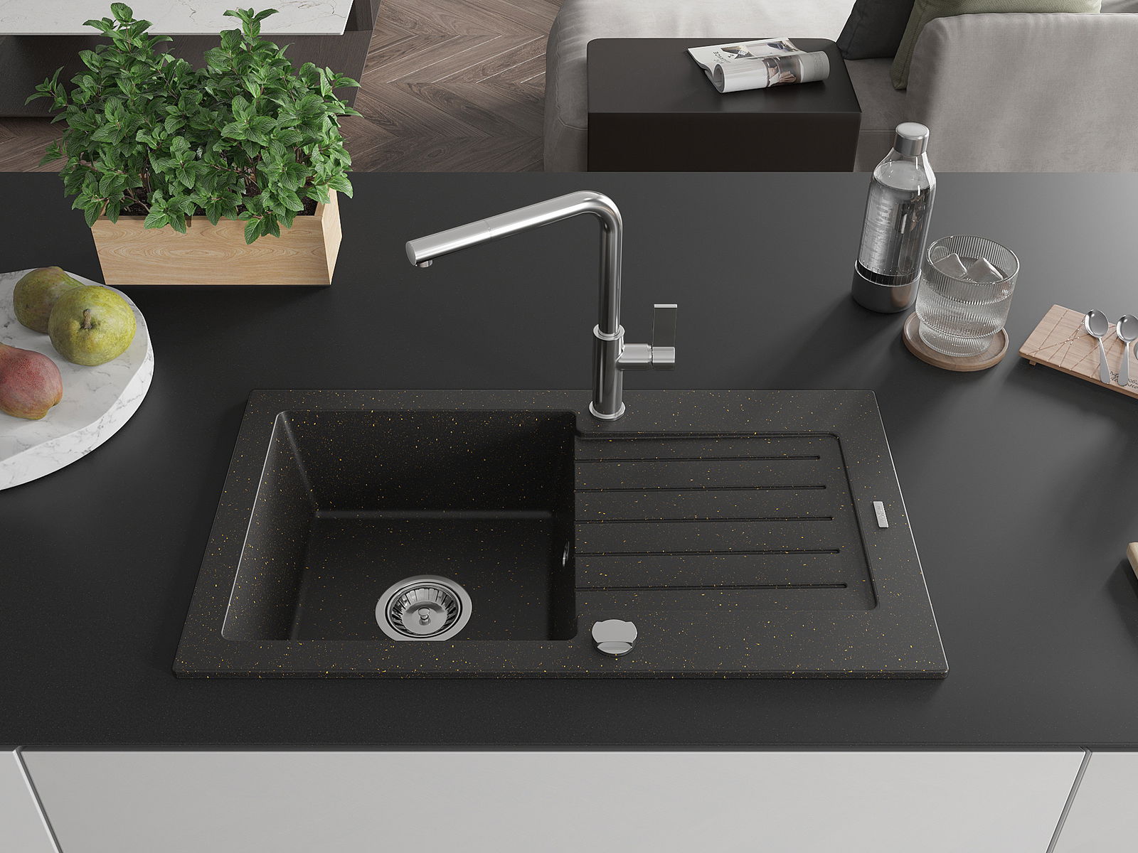 Ο νεροχύτης κατασκευάστηκε από υψηλής ποιότητας γρανίτη. Αποτελεί μια κομψή, και κυρίως πρακτική προσθήκη για κάθε κουζίνα, ανεξάρτητα από το στυλ της. Η υψηλή ποιότητα και η αντοχή του γρανίτη εξασφαλίζουν πολυετή χρήση.