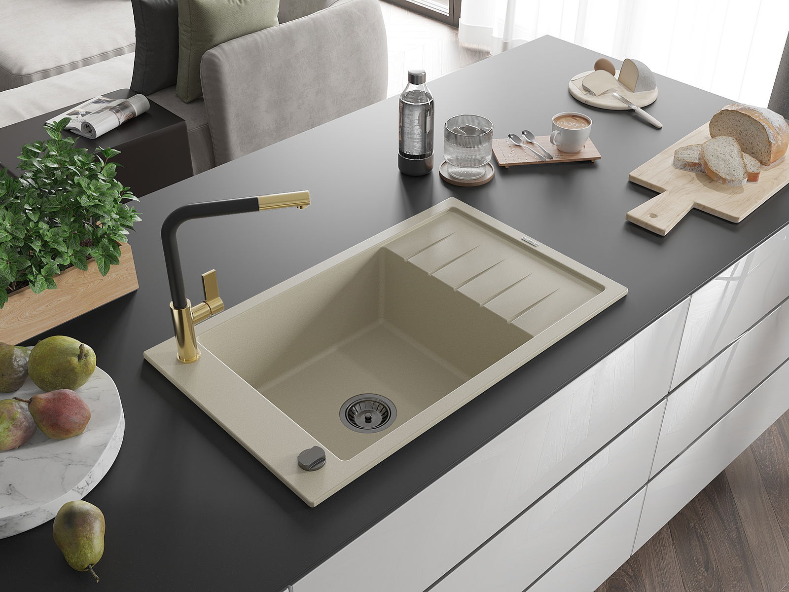 Η επιφάνεια του νεροχύτη είναι ανθεκτική σε λεκέδες και αποχρωματισμούς, καθιστώντας τη εύκολη στη συντήρηση καθαριότητας και διατηρεί το χρώμα της για μεγάλο χρονικό διάστημα χρήσης. Αισθητική και πρακτική συμπλήρωση κάθε κουζίνας.