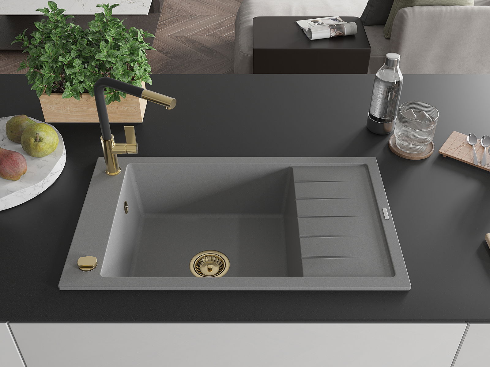 Mexen Elias νεροχύτης από γρανίτη με 1 θάλαμο με αποστραγγιστήρα και