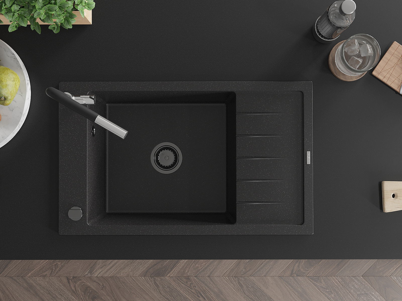 Mexen Elias νεροχύτης γρανίτης 1-θέσιο με στραγγιστήριο και μπαταρία