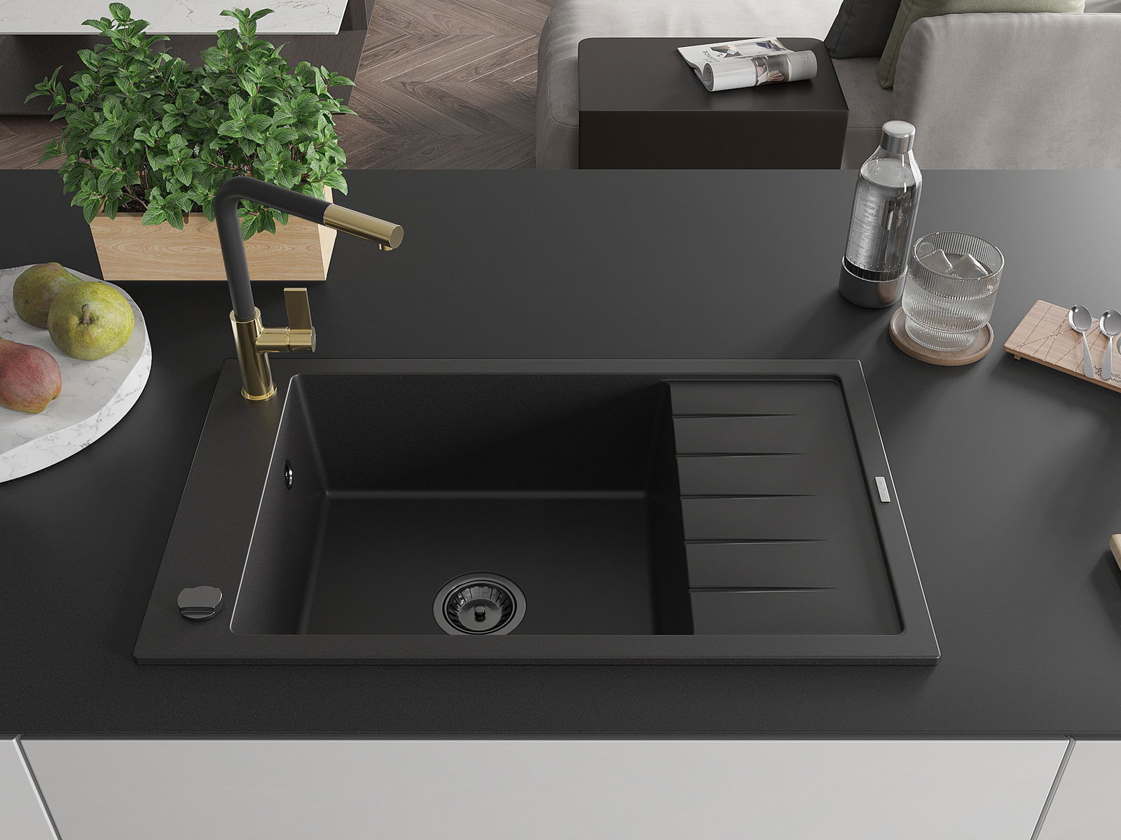 Mexen Elias νεροχύτης με μία γούρνα από γρανίτη με αποστράγγιση και