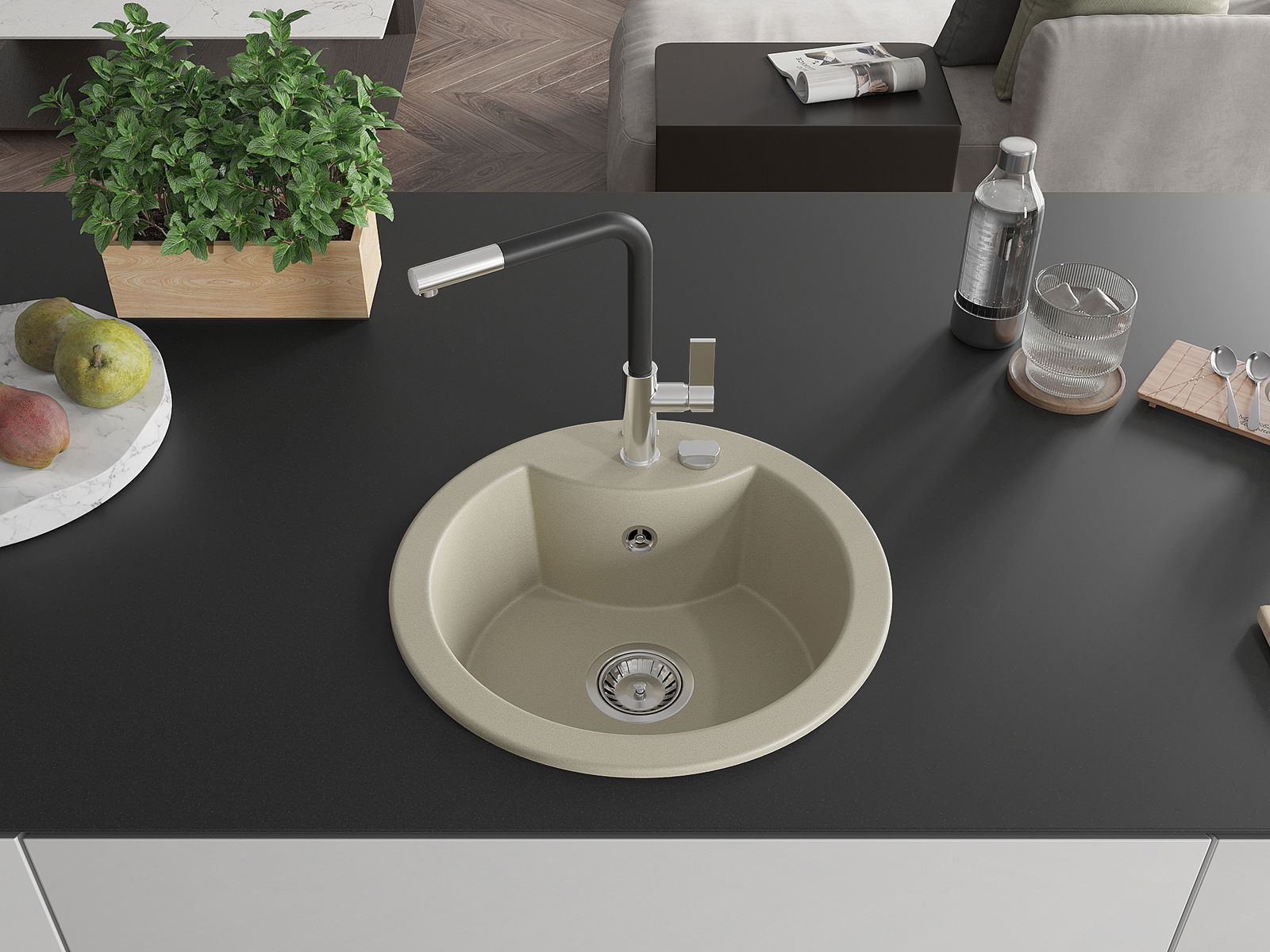 Ο νεροχύτης κατασκευάστηκε από υψηλής ποιότητας γρανίτη. Αποτελεί μια κομψή, και κυρίως πρακτική προσθήκη για κάθε κουζίνα, ανεξάρτητα από το στυλ της. Η υψηλή ποιότητα και η αντοχή του γρανίτη εξασφαλίζουν πολυετή χρήση.