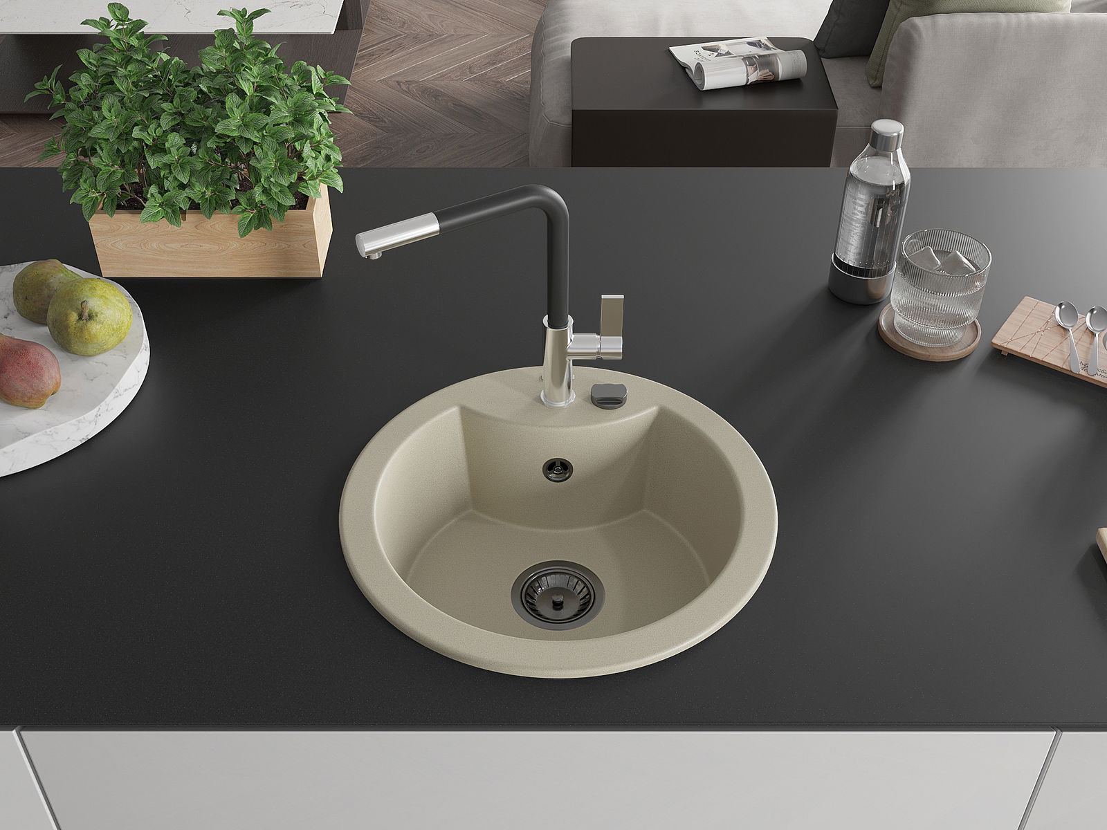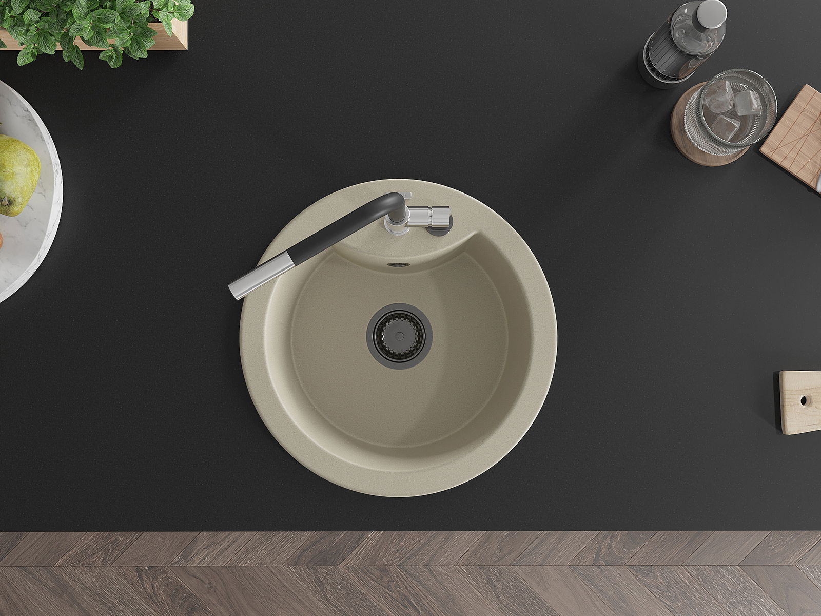 Ο νεροχύτης κατασκευάστηκε από υψηλής ποιότητας γρανίτη. Αποτελεί μια κομψή, και κυρίως πρακτική προσθήκη για κάθε κουζίνα, ανεξάρτητα από το στυλ της. Η υψηλή ποιότητα και η αντοχή του γρανίτη εξασφαλίζουν πολυετή χρήση.