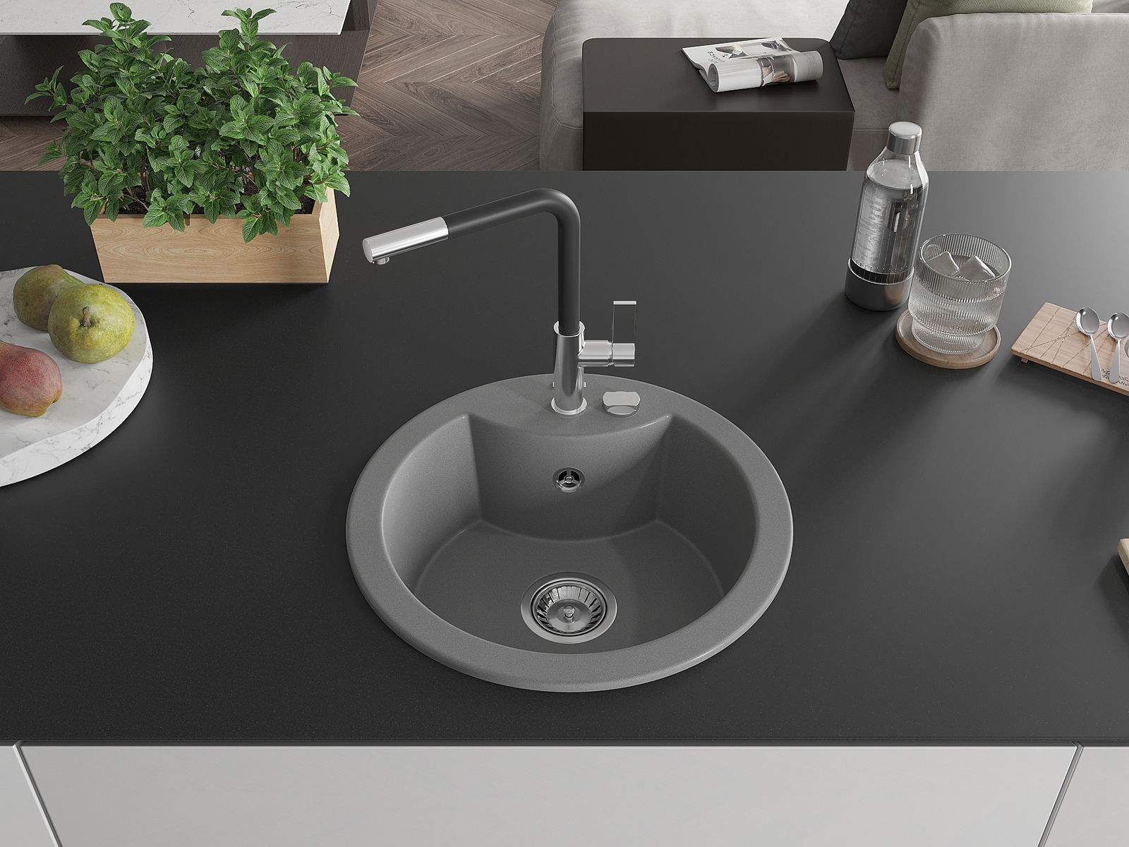 Ο νεροχύτης κατασκευάστηκε από υψηλής ποιότητας γρανίτη. Αποτελεί μια κομψή, και κυρίως πρακτική προσθήκη για κάθε κουζίνα, ανεξάρτητα από το στυλ της. Η υψηλή ποιότητα και η αντοχή του γρανίτη εξασφαλίζουν πολυετή χρήση.