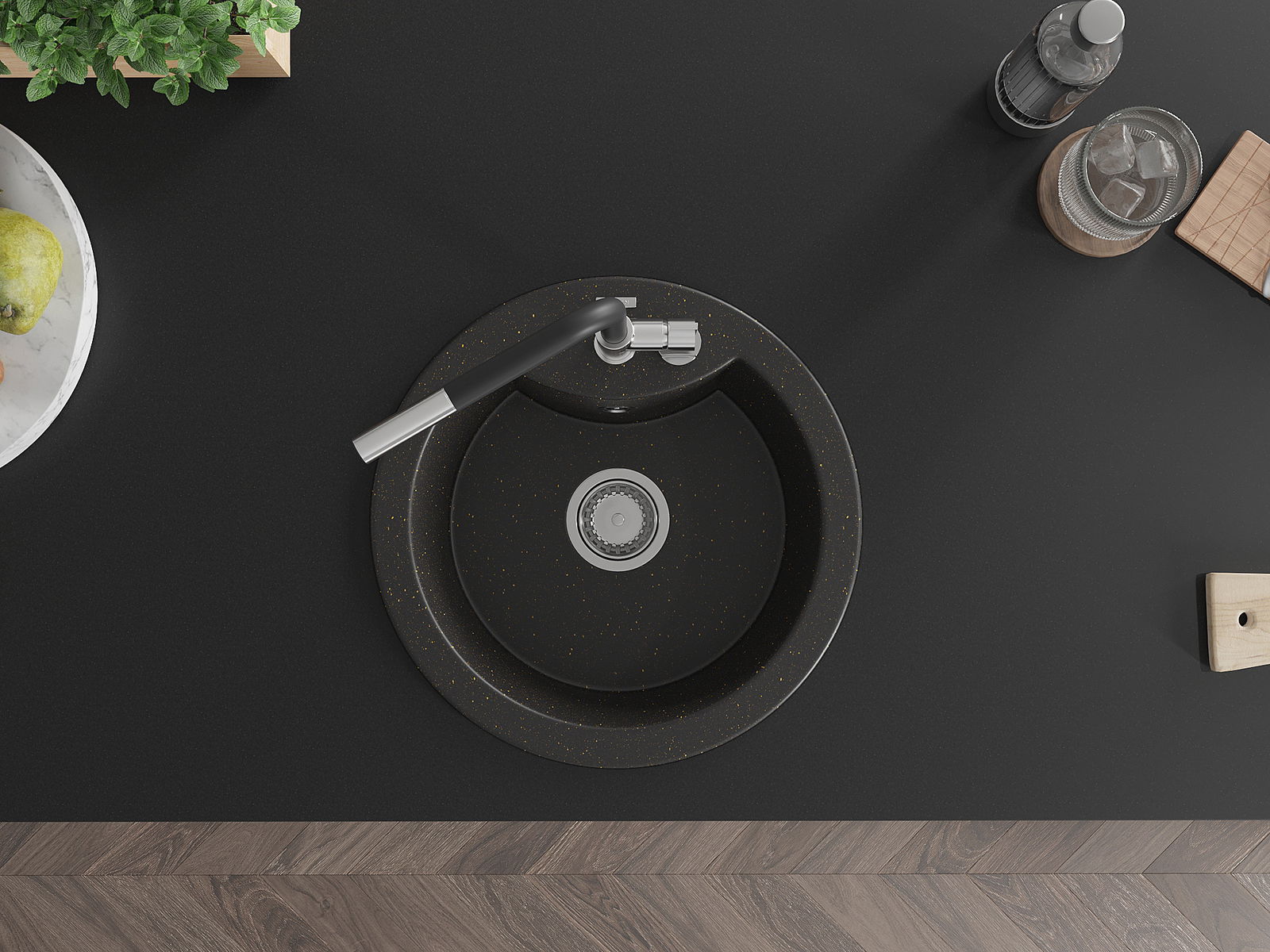 Ο νεροχύτης κατασκευάστηκε από υψηλής ποιότητας γρανίτη. Αποτελεί μια κομψή, και κυρίως πρακτική προσθήκη για κάθε κουζίνα, ανεξάρτητα από το στυλ της. Η υψηλή ποιότητα και η αντοχή του γρανίτη εξασφαλίζουν πολυετή χρήση.