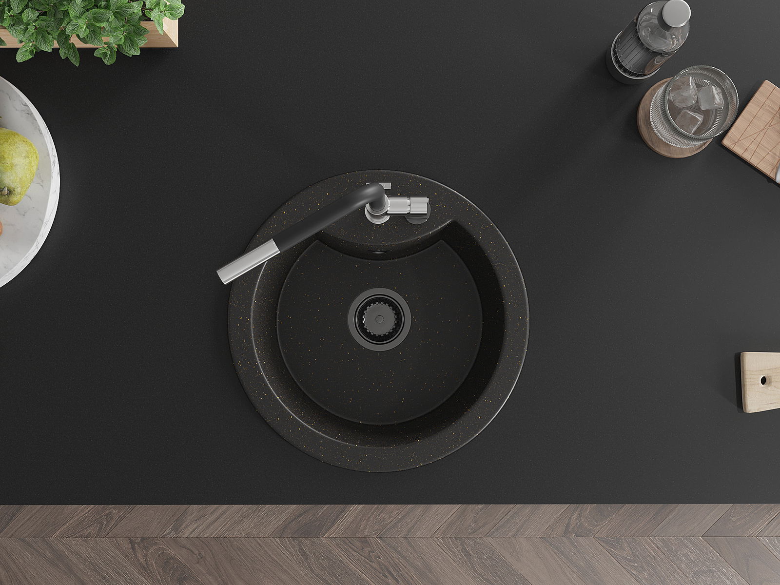 Ο νεροχύτης κατασκευάστηκε από υψηλής ποιότητας γρανίτη. Αποτελεί μια κομψή, και κυρίως πρακτική προσθήκη για κάθε κουζίνα, ανεξάρτητα από το στυλ της. Η υψηλή ποιότητα και η αντοχή του γρανίτη εξασφαλίζουν πολυετή χρήση.
