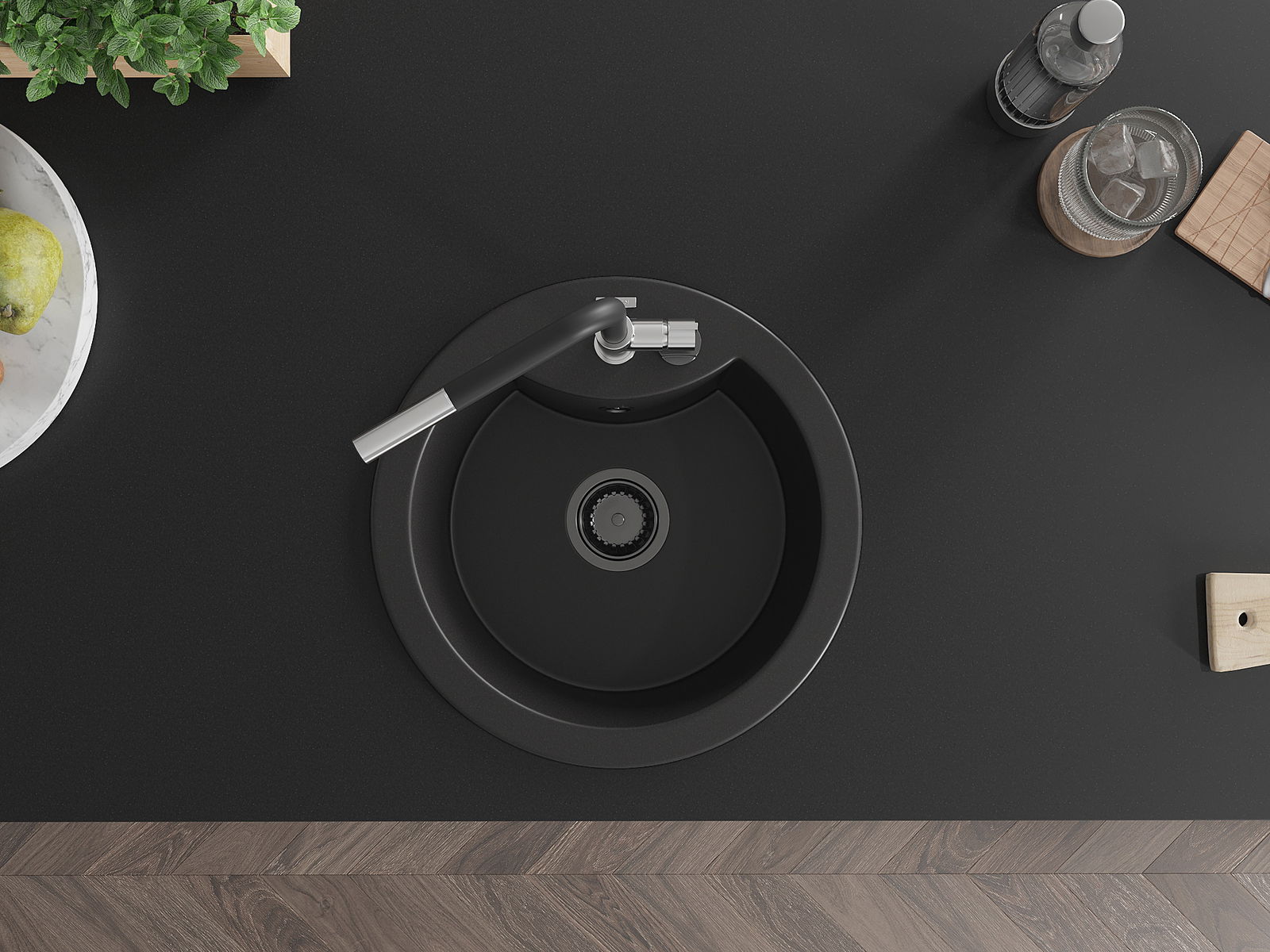 Mexen Diego νεροχύτης γρανιτένιος 1-κυψελών με βρύση κουζίνας Flora, μαύρος