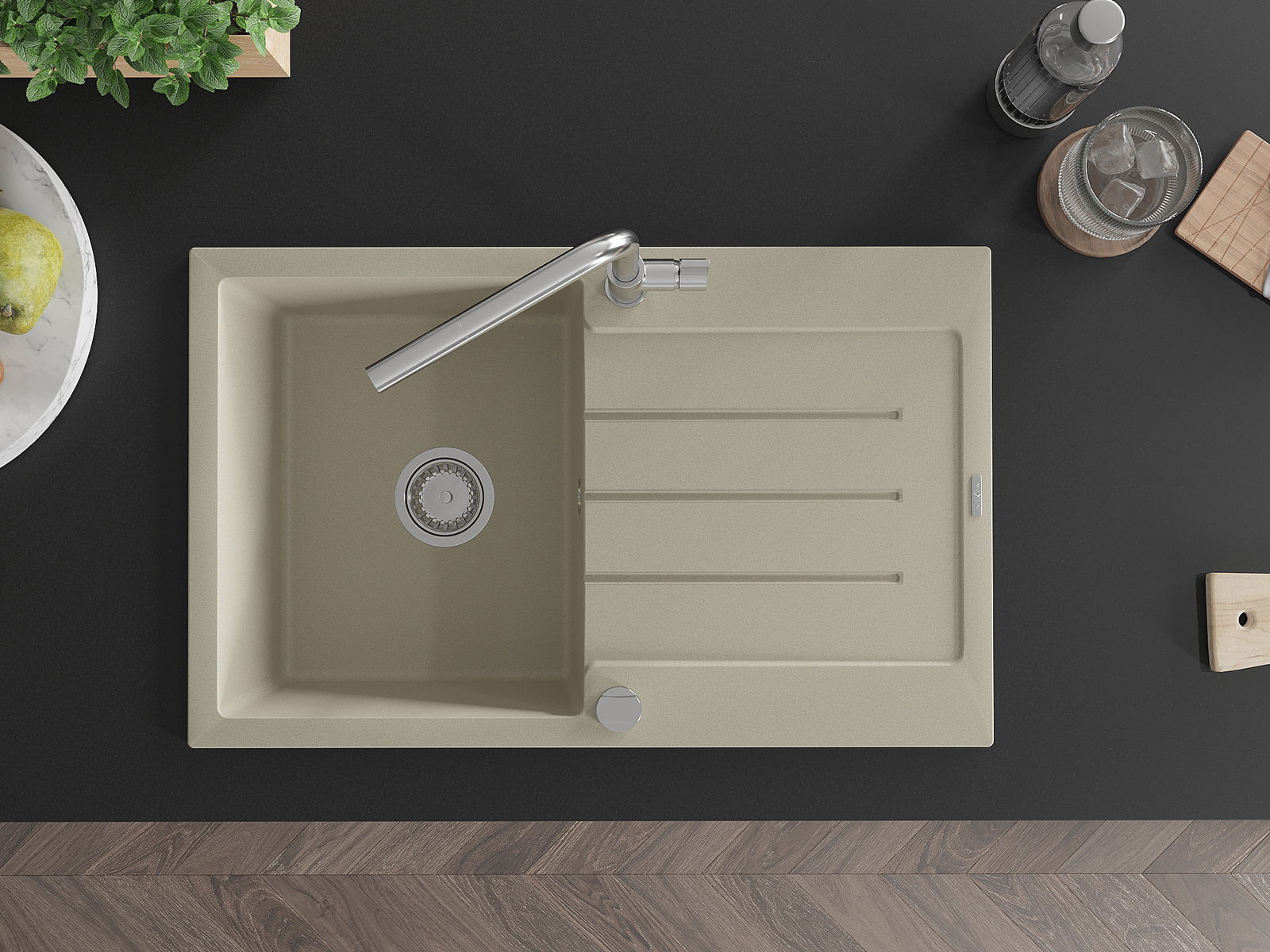 Ο νεροχύτης κατασκευάστηκε από υψηλής ποιότητας γρανίτη. Αποτελεί μια κομψή, και κυρίως πρακτική προσθήκη για κάθε κουζίνα, ανεξάρτητα από το στυλ της. Η υψηλή ποιότητα και η αντοχή του γρανίτη εξασφαλίζουν πολυετή χρήση.