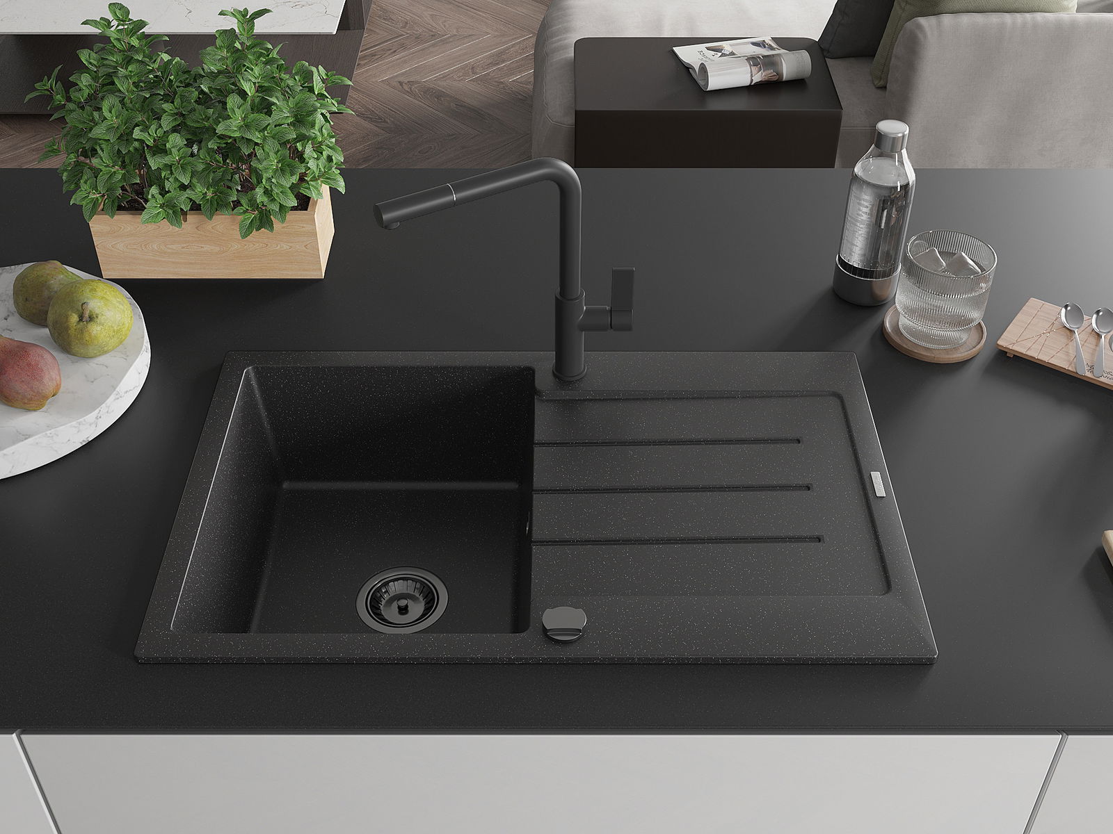 Mexen Bruno νεροχύτης γρανίτης 1-θέσεως με αποστραγγιστήρα και μπαταρία