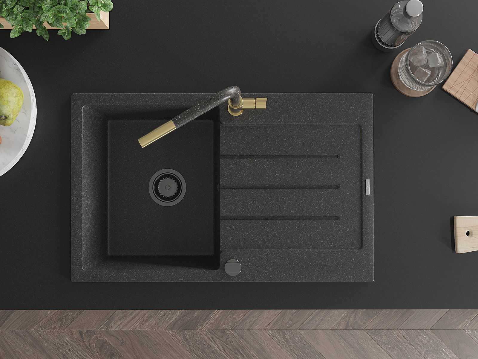 Mexen Bruno νεροχύτης γρανίτης μονοβάθμιος με αποστραγγιστήρα και