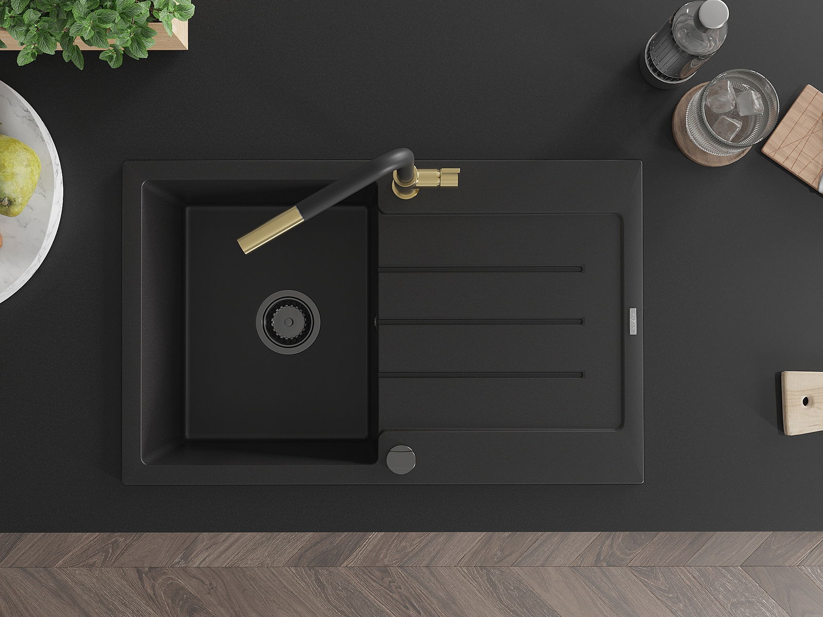 Mexen Bruno νεροχύτης γρανίτης 1-θέσεων με στραγγιστήριο και μπαταρία