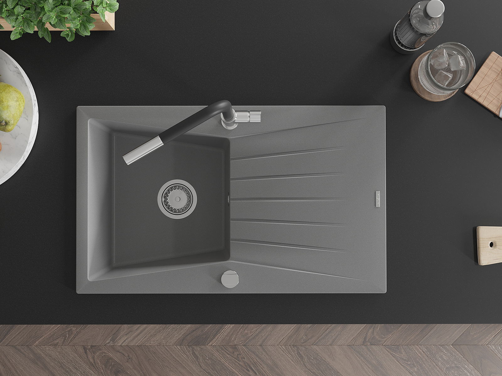 Ο νεροχύτης κατασκευάστηκε από υψηλής ποιότητας γρανίτη. Αποτελεί μια κομψή, και κυρίως πρακτική προσθήκη για κάθε κουζίνα, ανεξάρτητα από το στυλ της. Η υψηλή ποιότητα και η αντοχή του γρανίτη εξασφαλίζουν πολυετή χρήση.
