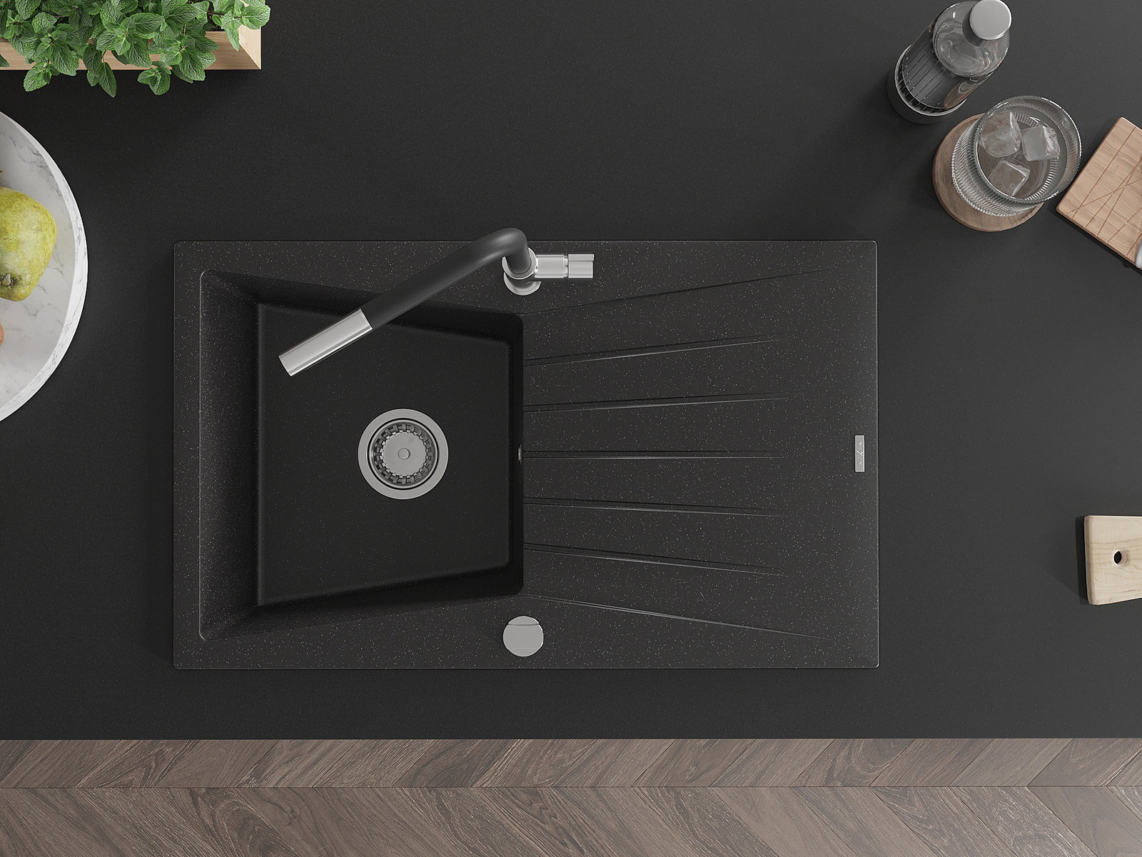 Ο νεροχύτης κατασκευάστηκε από υψηλής ποιότητας γρανίτη. Αποτελεί μια κομψή, και κυρίως πρακτική προσθήκη για κάθε κουζίνα, ανεξάρτητα από το στυλ της. Η υψηλή ποιότητα και η αντοχή του γρανίτη εξασφαλίζουν πολυετή χρήση.