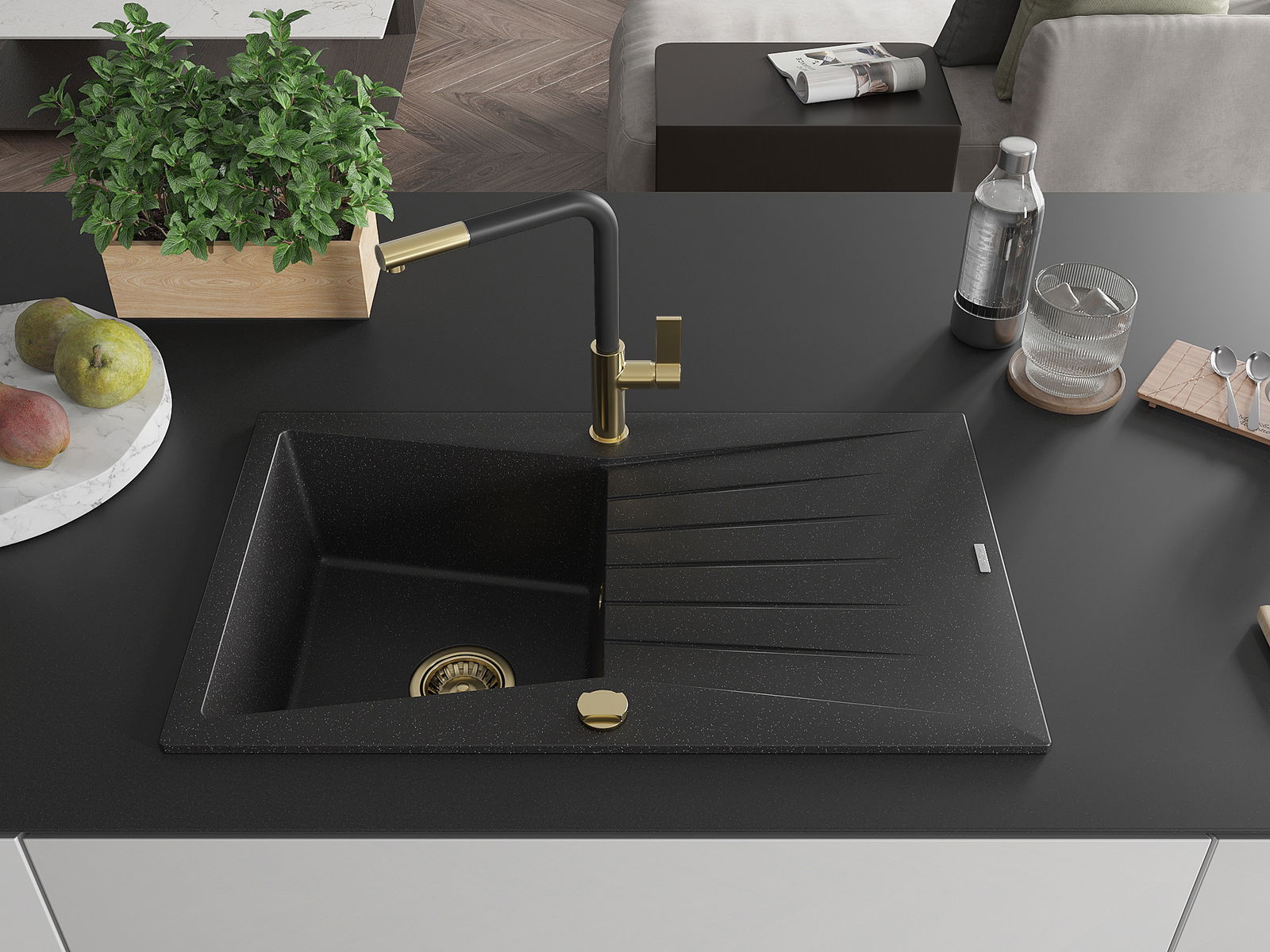 Mexen Cesar νεροχύτης γρανίτης 1-θέσεως με αποστραγγιστή και μπαταρία