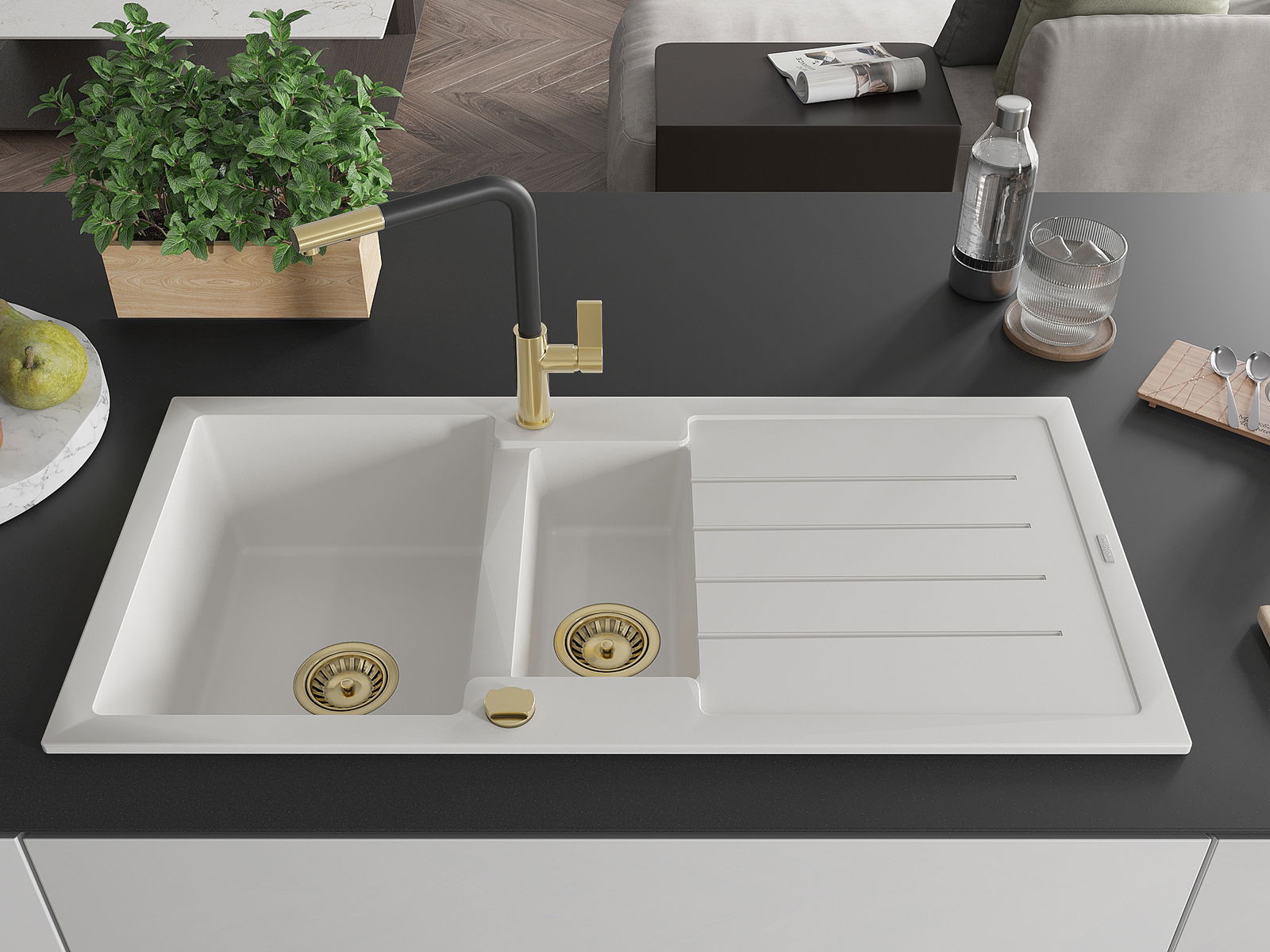 Η επιλογή ενός νεροχύτη με στραγγιστήρι είναι μια πρακτική λύση που επιτρέπει να τοποθετήσετε τα πλυμένα πιάτα ή τα λαχανικά και τα φρούτα. Το στραγγιστήρι διευκολύνει το καθημερινό μαγείρεμα και βοηθά στη διατήρηση της τάξης στην κουζίνα.