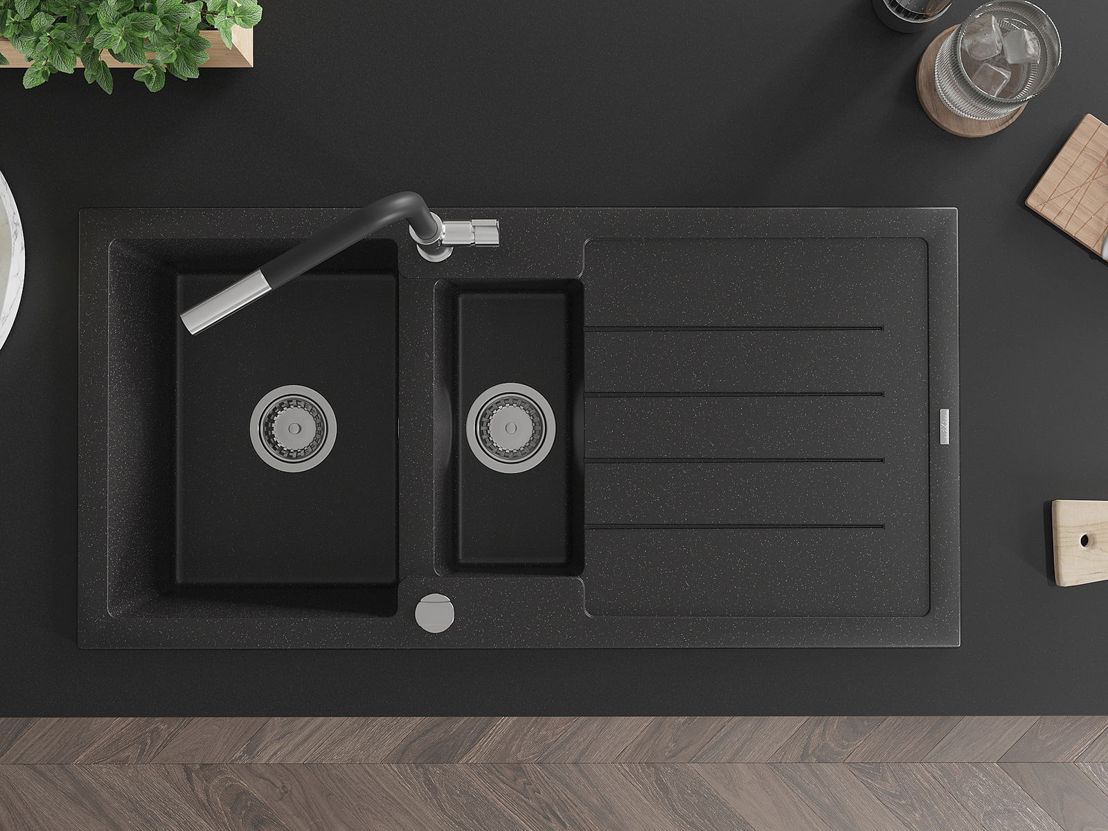 Mexen Andres νεροχύτης γρανίτης 1,5 θαλάμων με στραγγιστήρα και μπαταρία